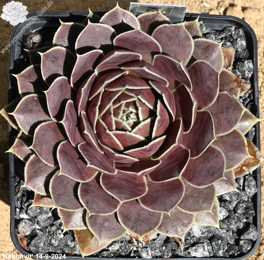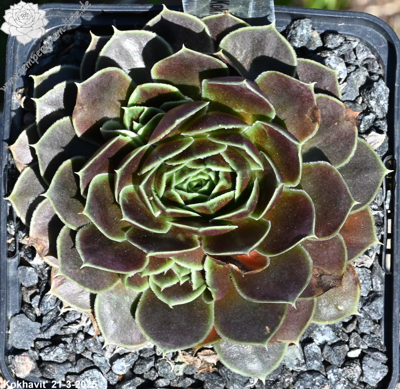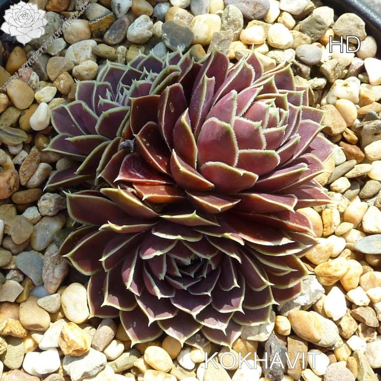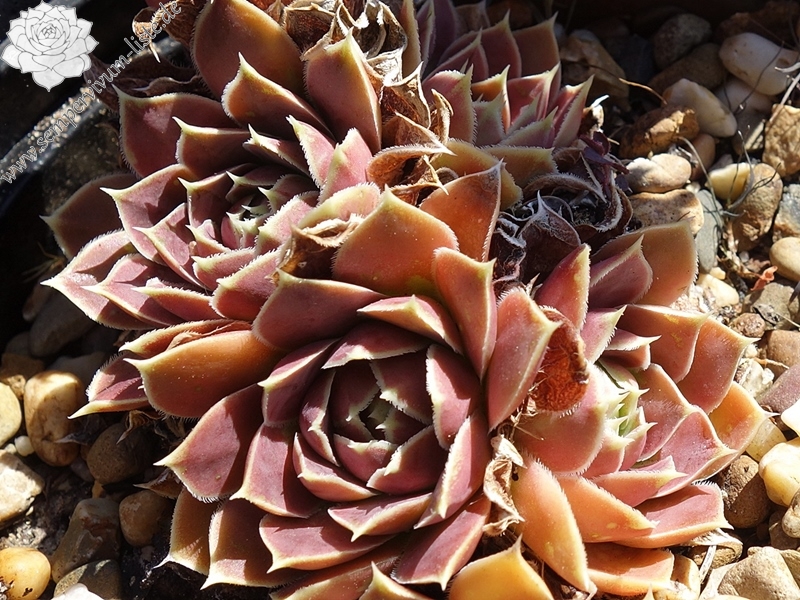 kleine Rosetten, Blätter oval, lang bespitzt, lachsorange - altrosa, Blattränder gelb