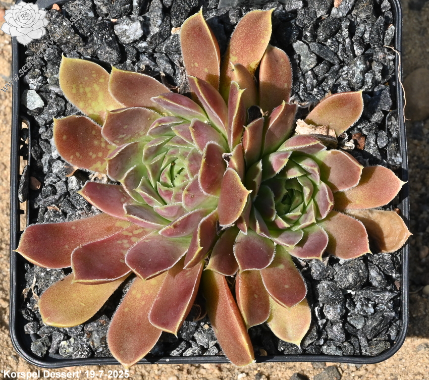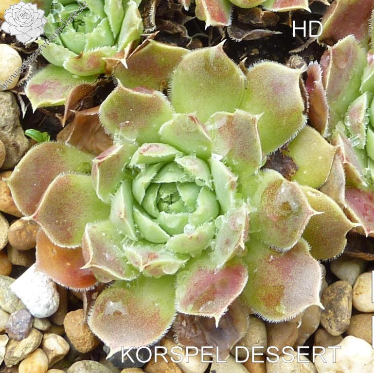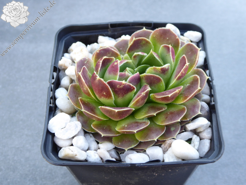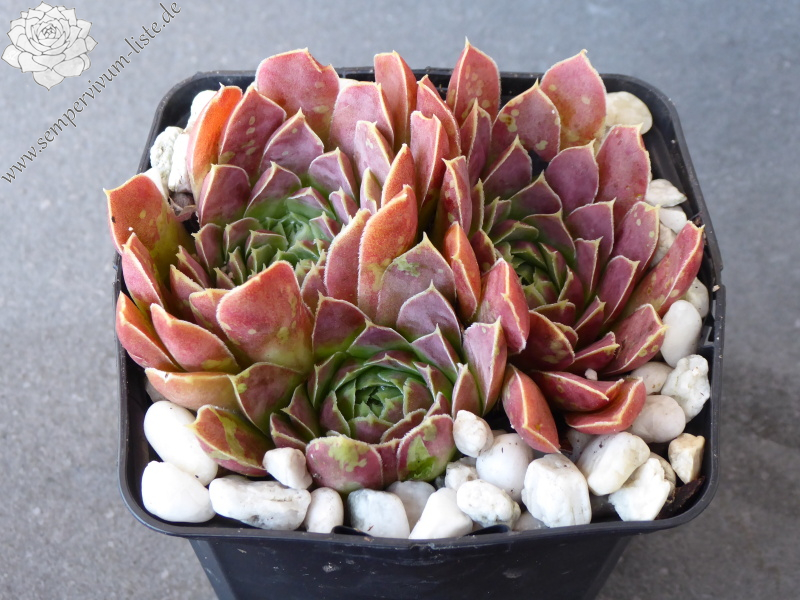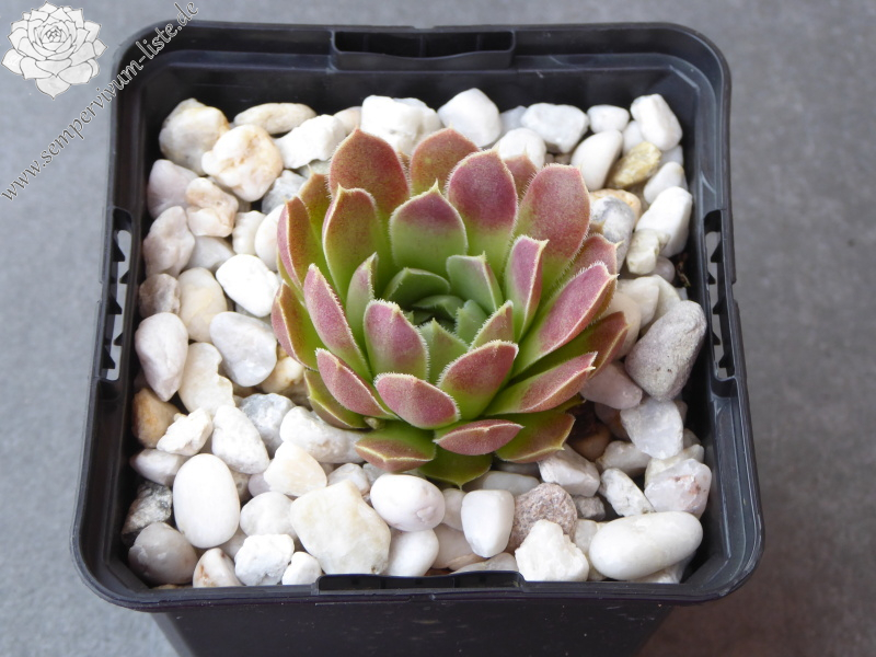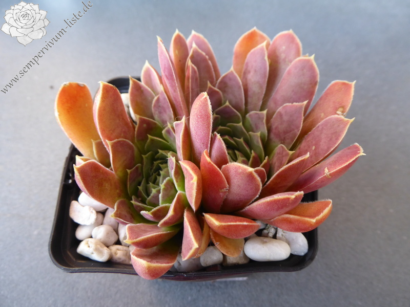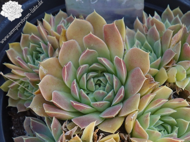 Rosetten bis 5 cm, Blätter eiförmig, kurz bespitzt, grünlich - gelb, rosa überhaucht