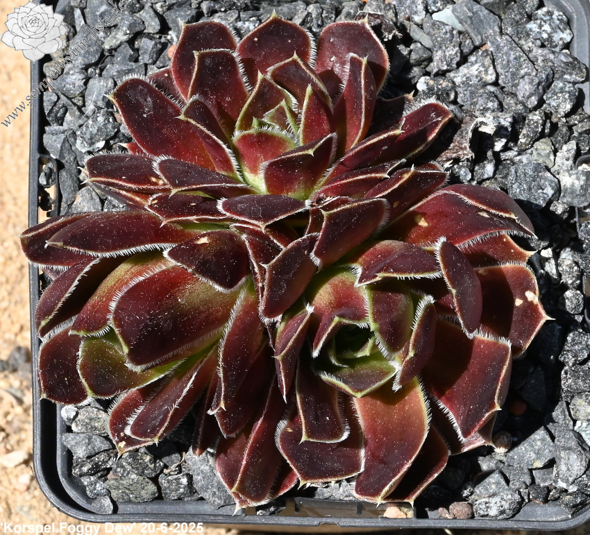 Rostten bis 10 cm, Blätter lanzettlich, lang bespitzt, rotviolett - bordeauxviolett - weinrot, Blattränder hell, bewimpert