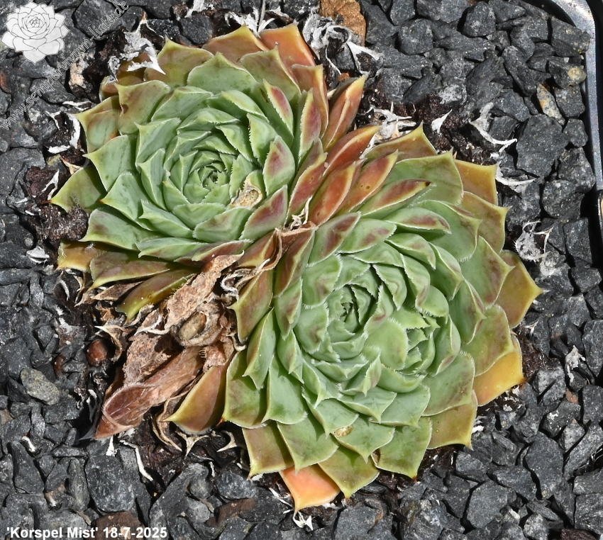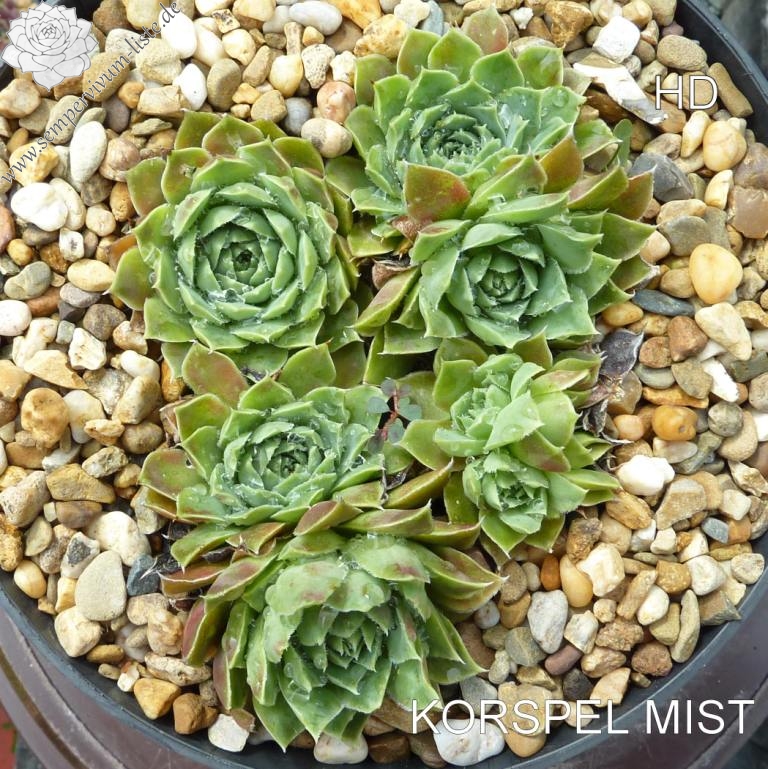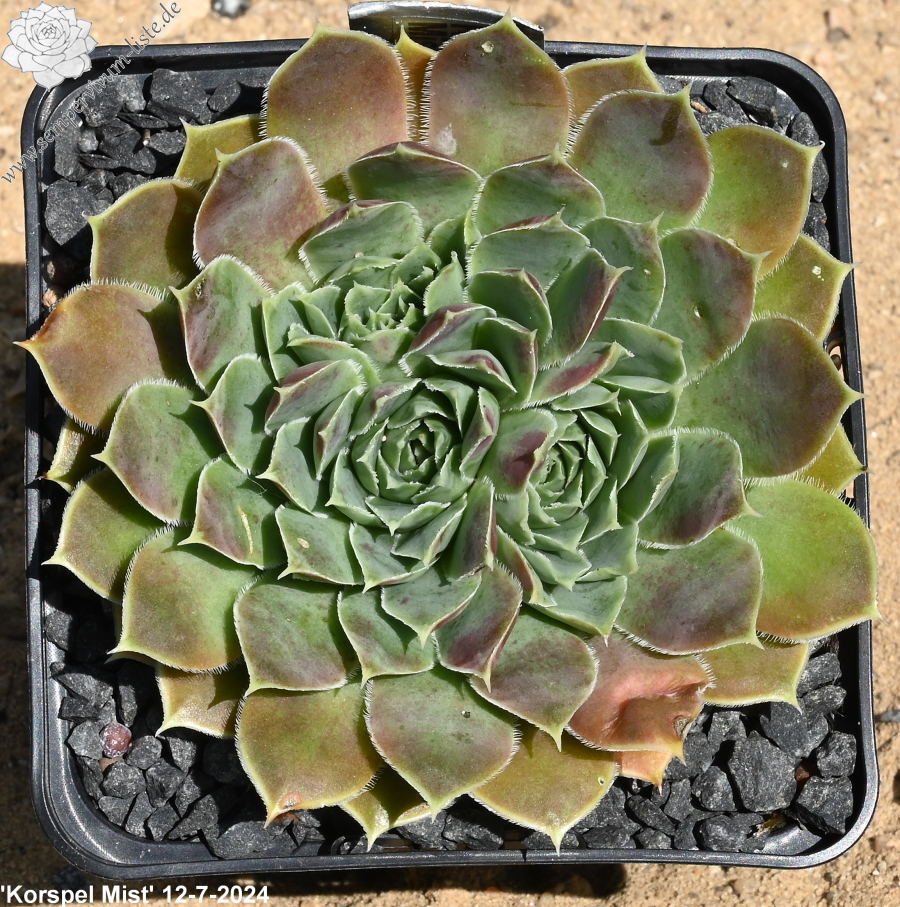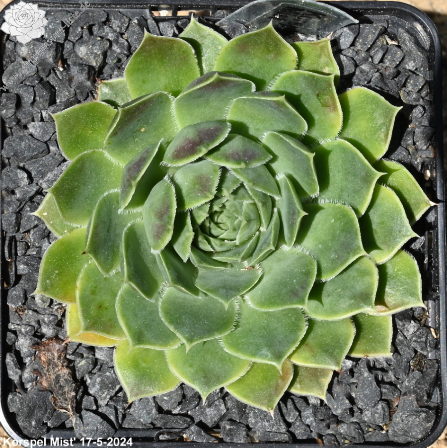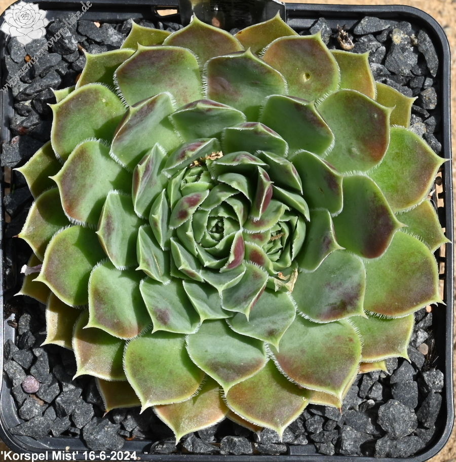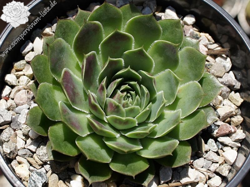 Rosetten bis 6 cm, Blätter oval, kurz bespitzt, hellgrün, Blattspitzen rosa überhaucht