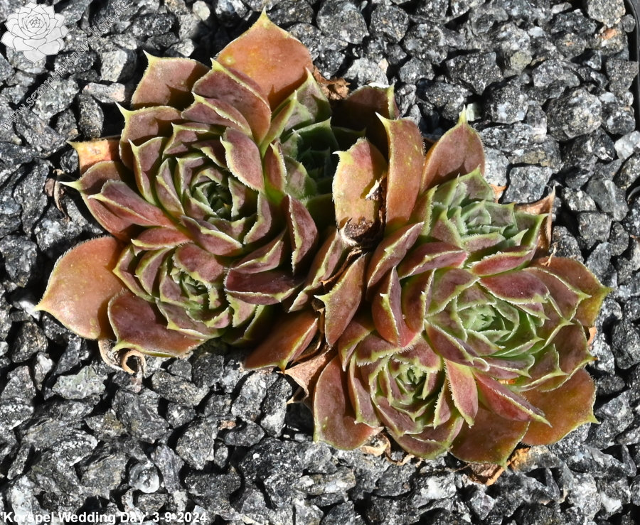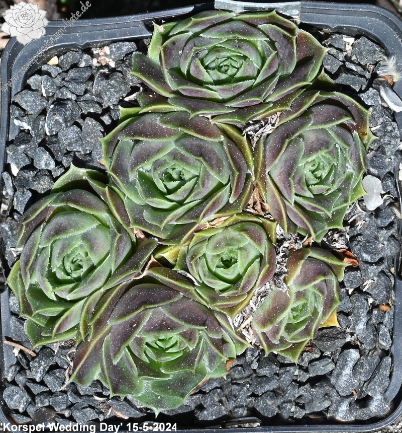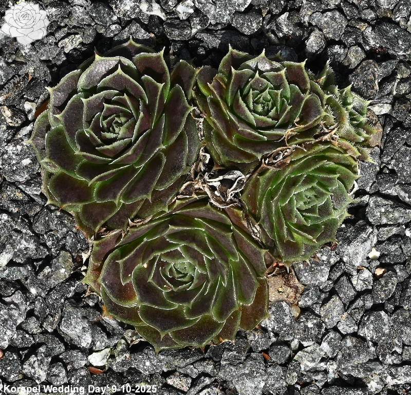 kleine Rosetten, Blätter rundlich, kurz bespitzt, Basis hellgrün, Rest beigebraun -beigerosa