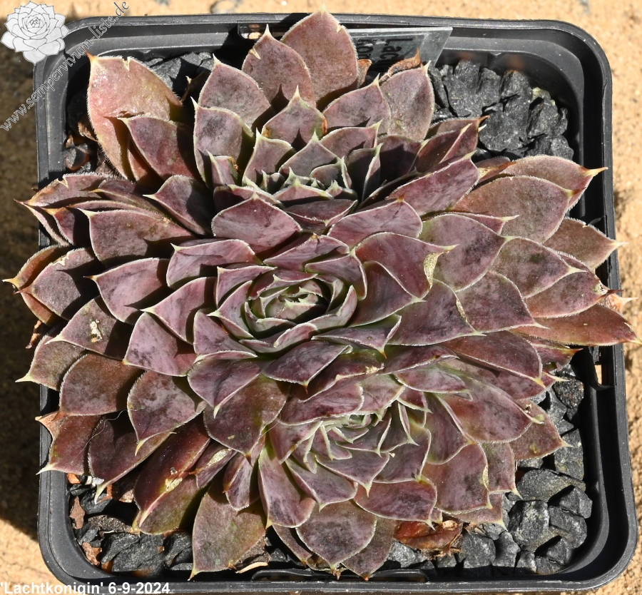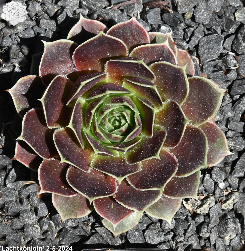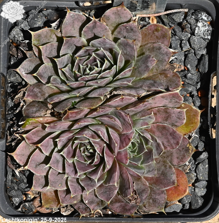 Rosetten bis 5 cm, Blätter rundlich, kurz bespitzt, altrosa, Herz hellgrün, Blattränder hell