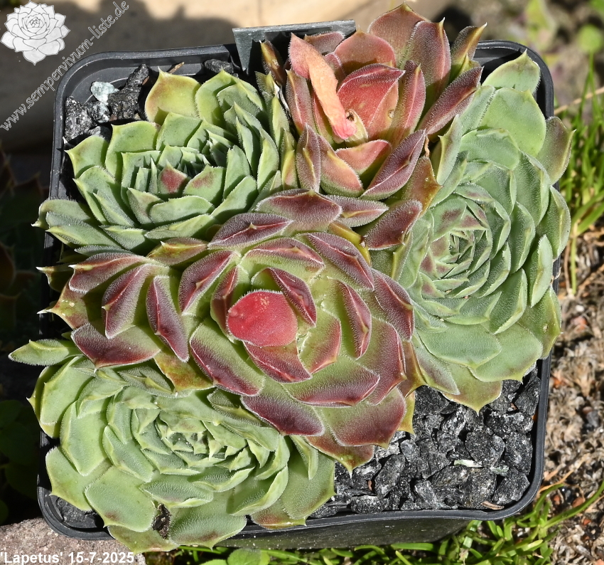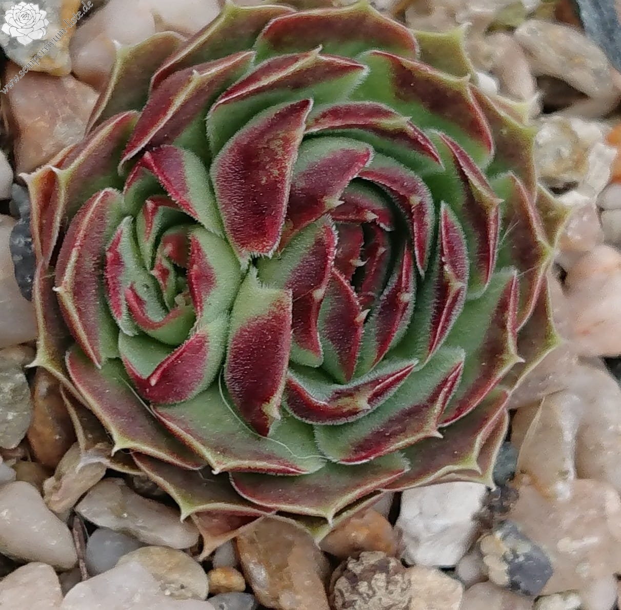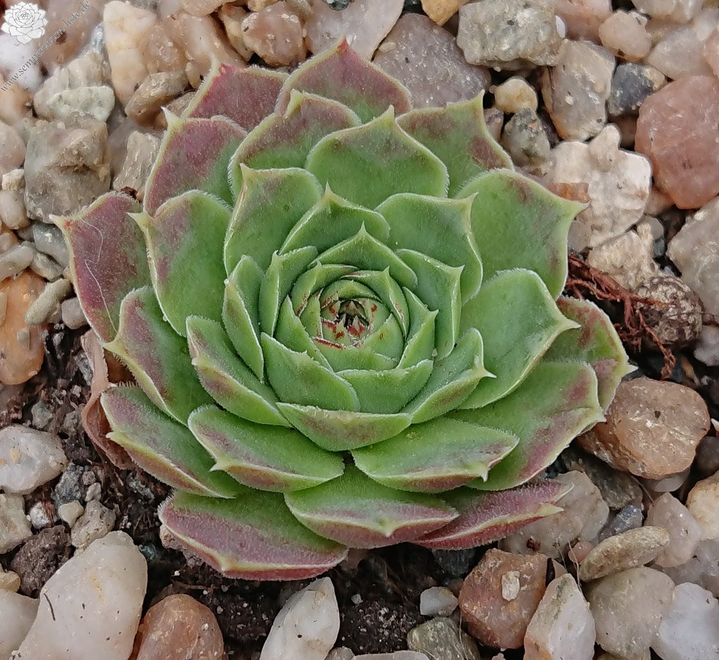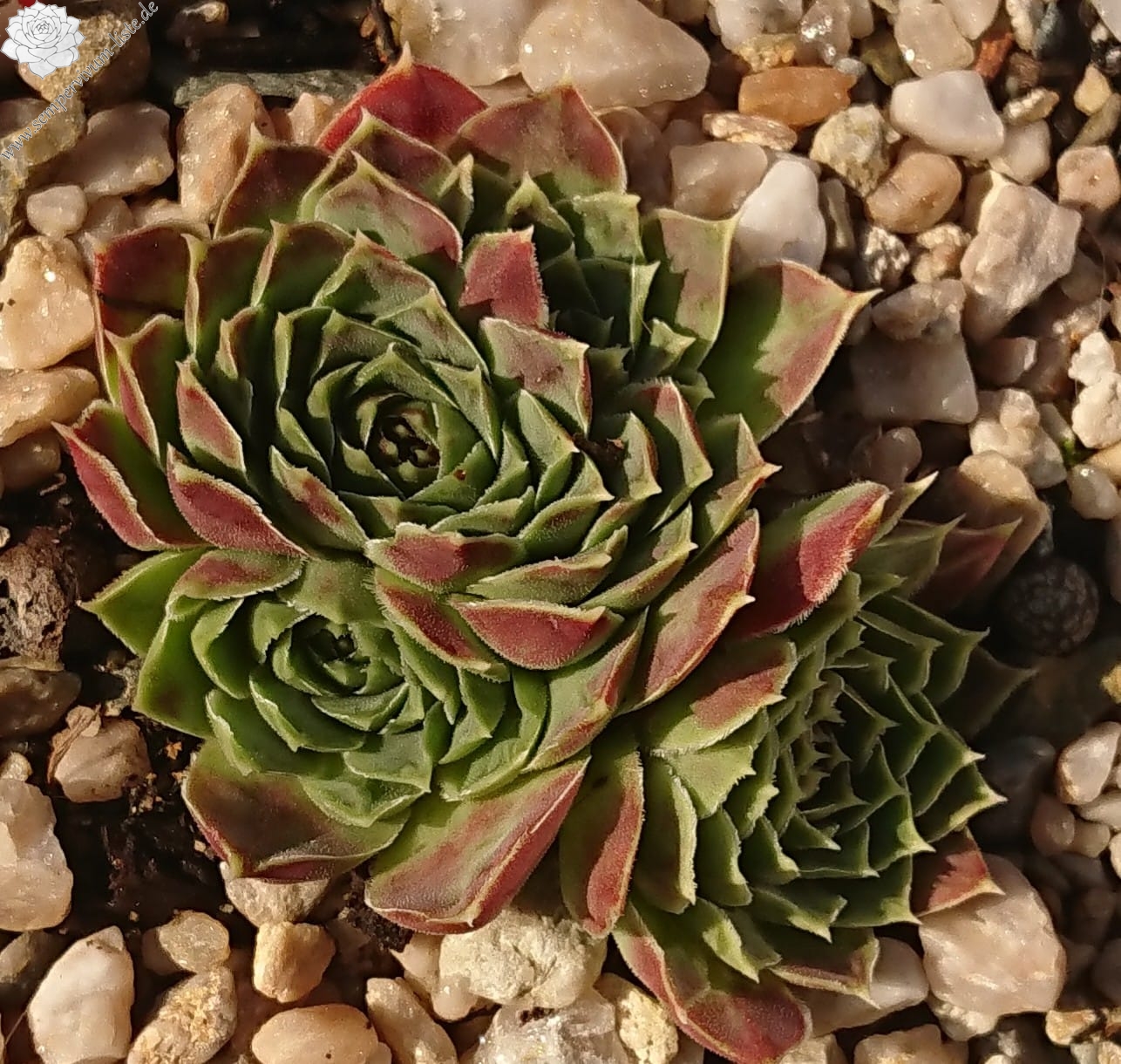 Rosetten bis 7 cm, keilförmige Blätter, kurz bespitzt, lindgrün, Spitzen leicht bräunlich - rosa überhaucht