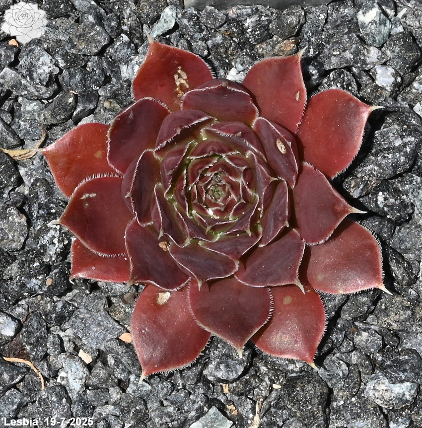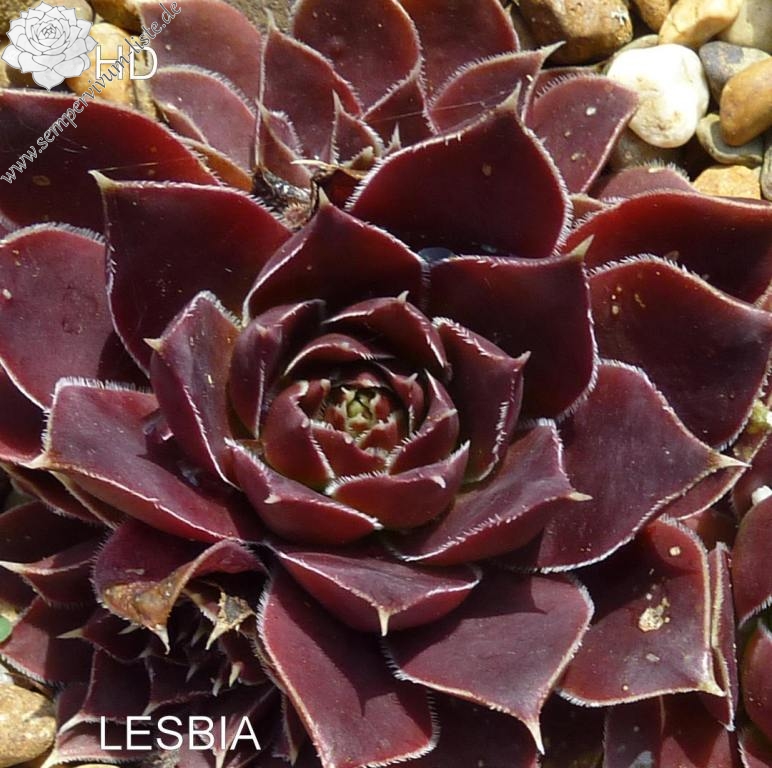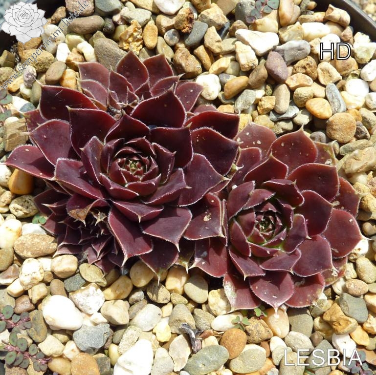 Rosetten bis 7 cm, Blätter oval, lang bespitzt, purpurrot - weinrot, Blattränder bewimpert