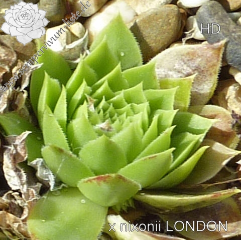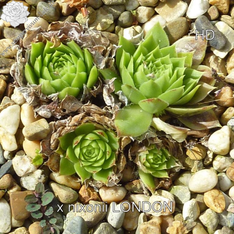Diese Züchtung gehört zu den Hybriden mit den größeren Rosetten aus der Gruppe der Bastarde von S. heuffelii mit den S. globiferum Unterarten. cv. London ist bislang kaum verbreitet. Wir haben sie vor einigen Jahren vom Züchter erhalten.