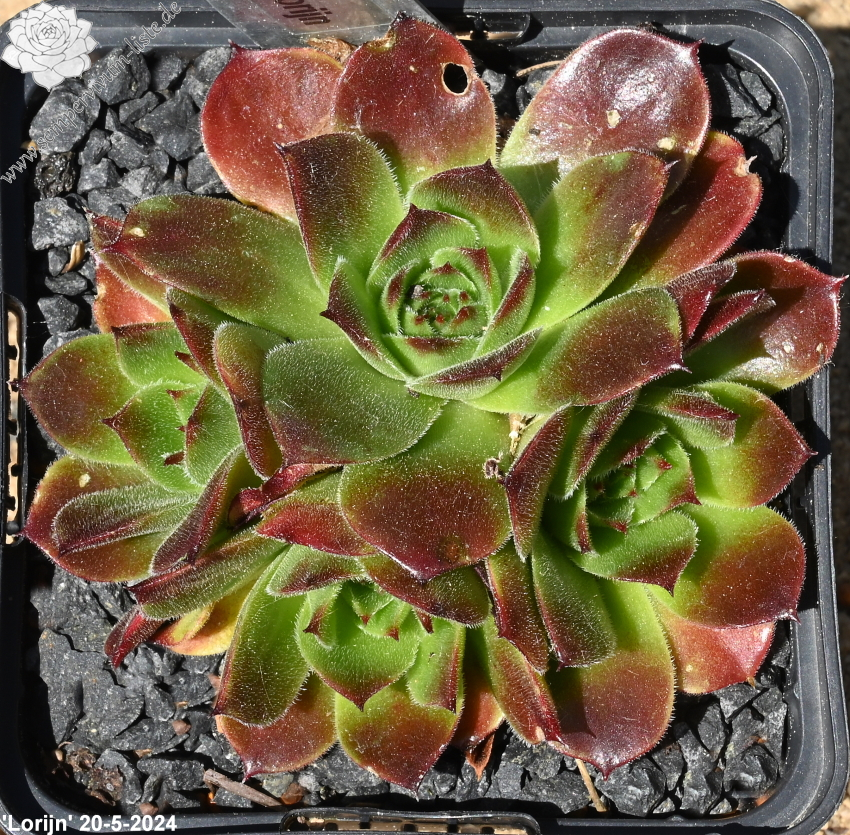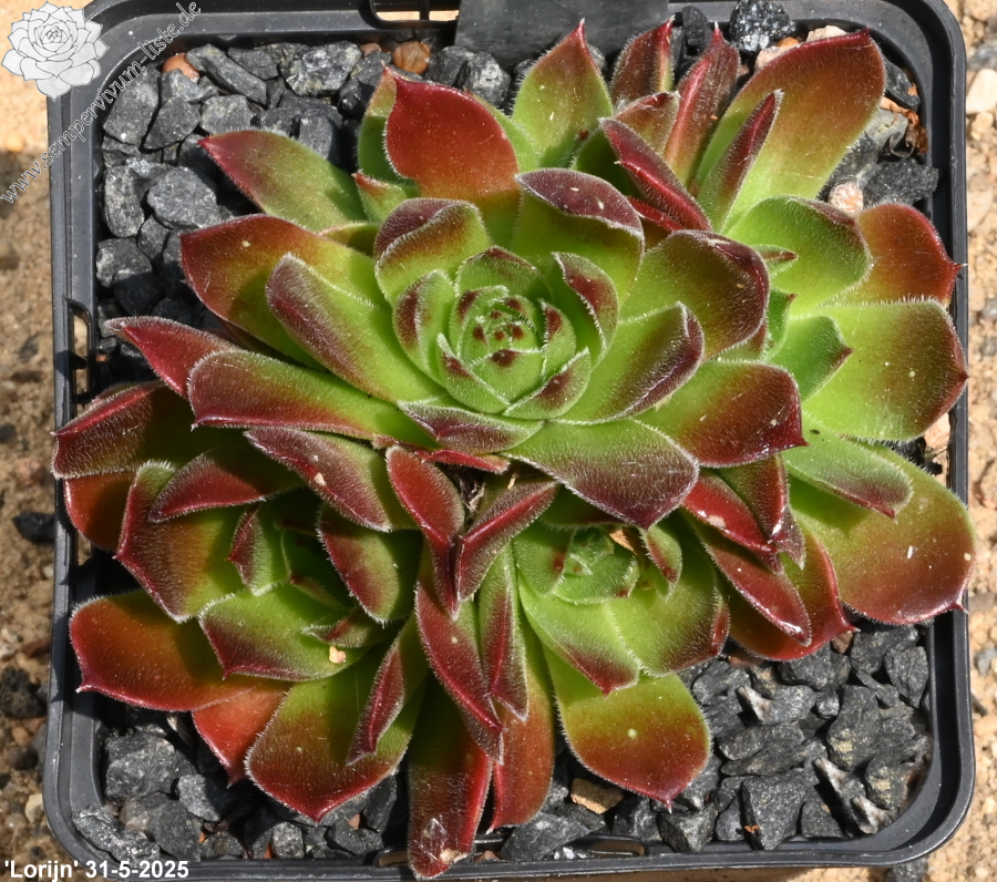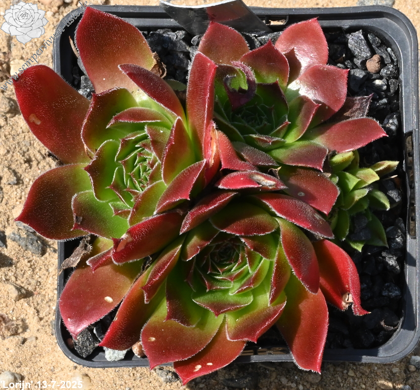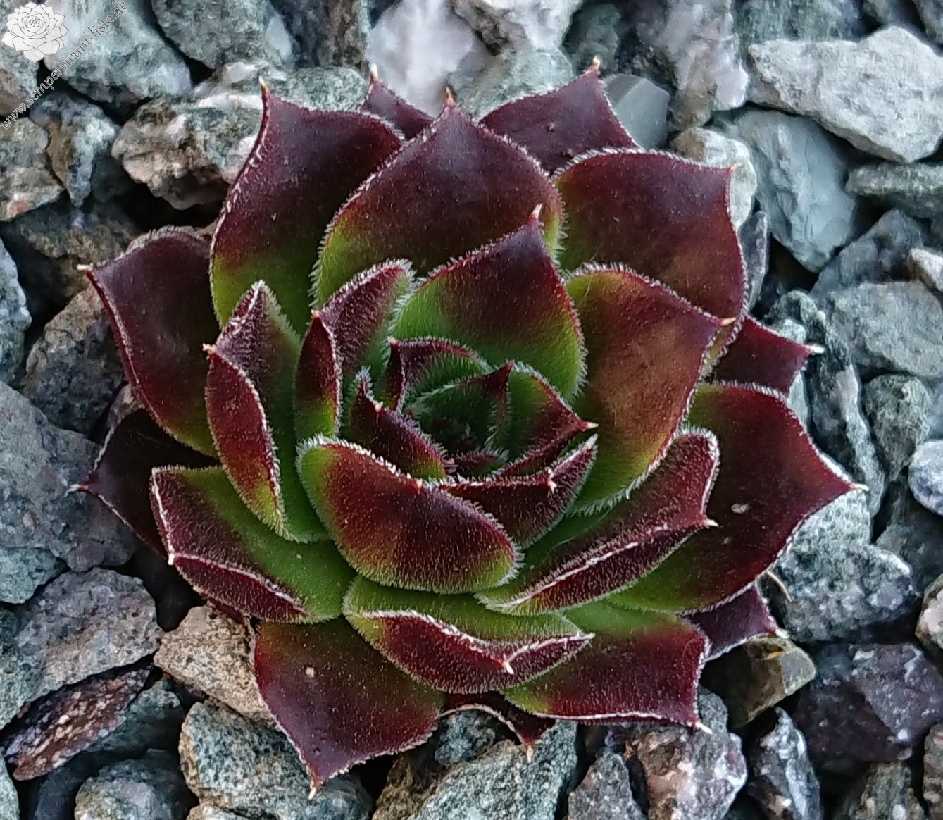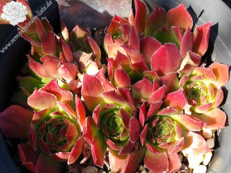 kleine Rosetten, Blätter linealisch, lang bespitzt, leuchtendes Dunkelrot, Blattränder hell bewimpert