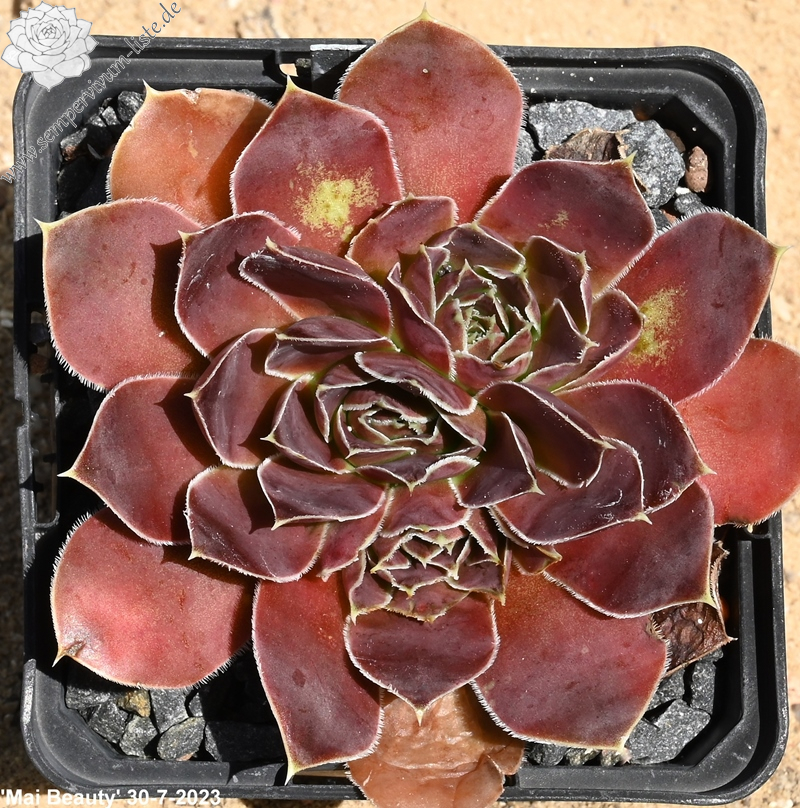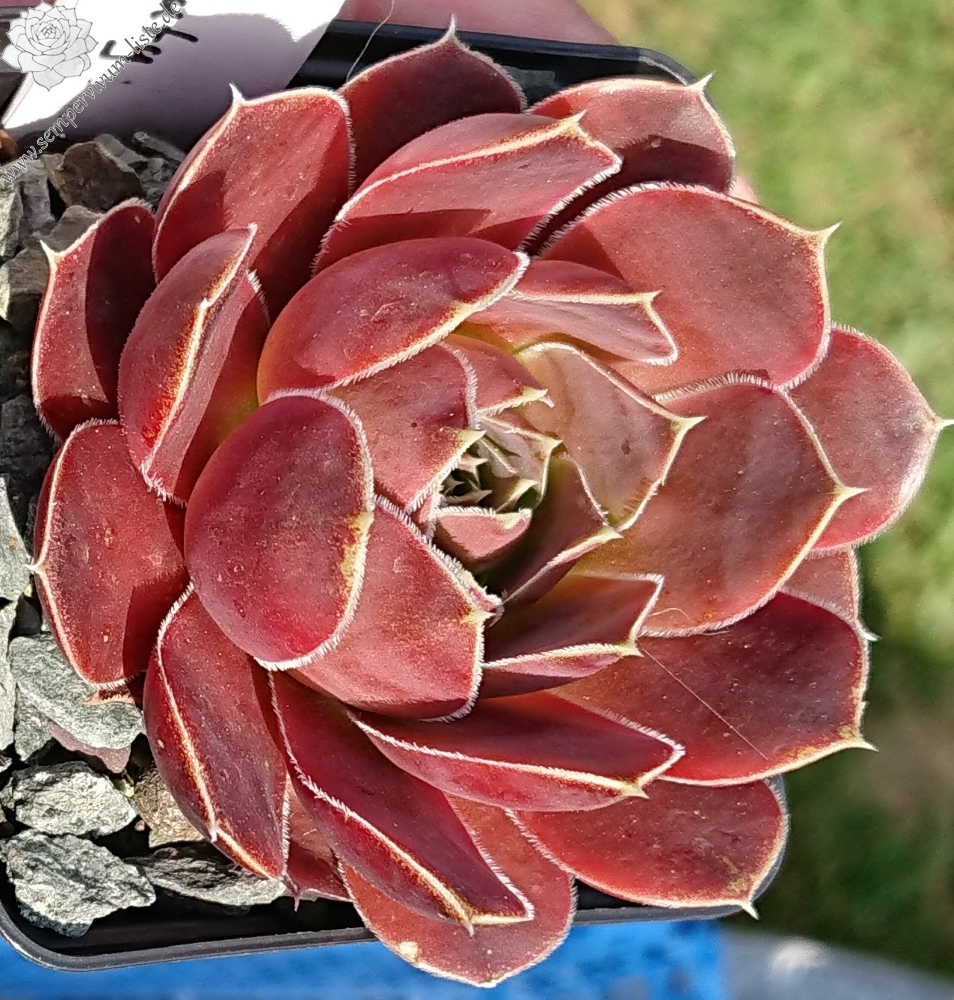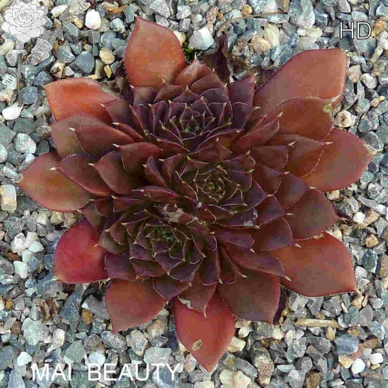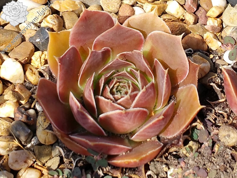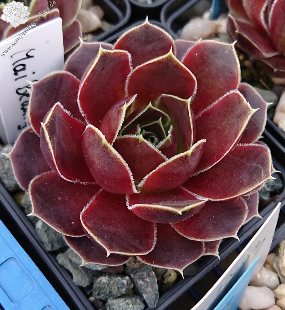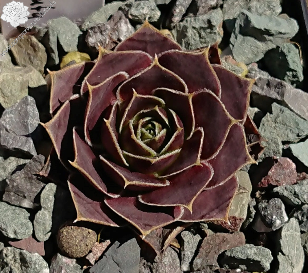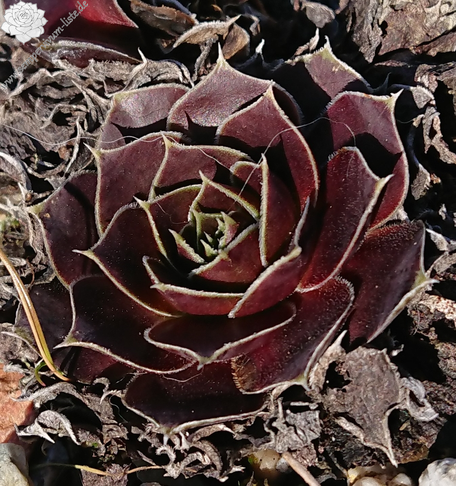 kleine Rosetten, Blätter oval, kurz bespitzt, samtige Substanz, korallenrot - braunrot, Blattränder hell, bewimpert