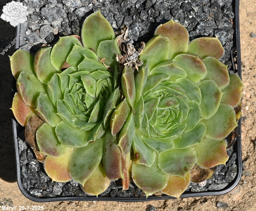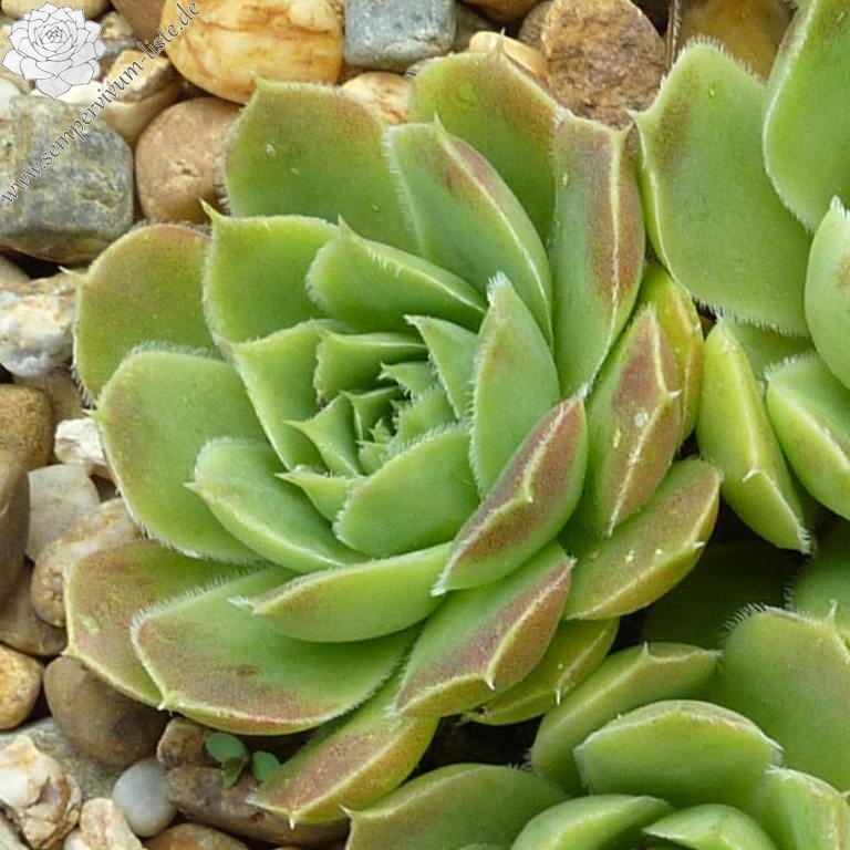 Rosetten bis 5 cm, Blätter eiförmig, kurz bespitzt, hellgrün - grünbeige, Blattspitzen leicht rosa überhaucht