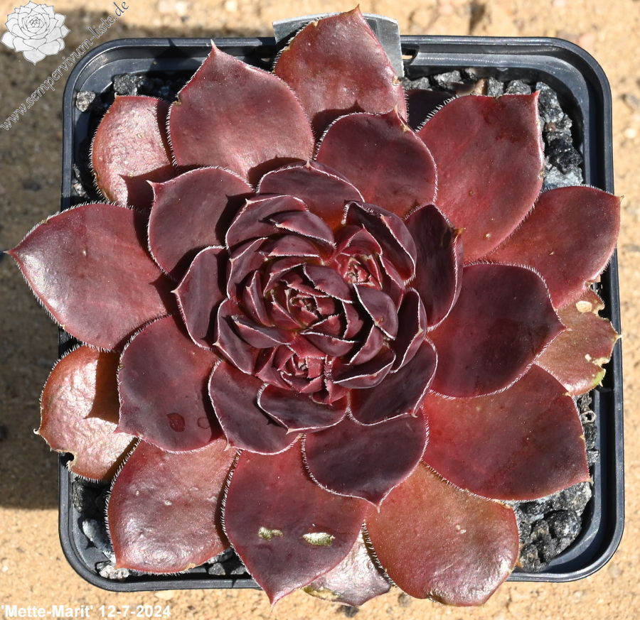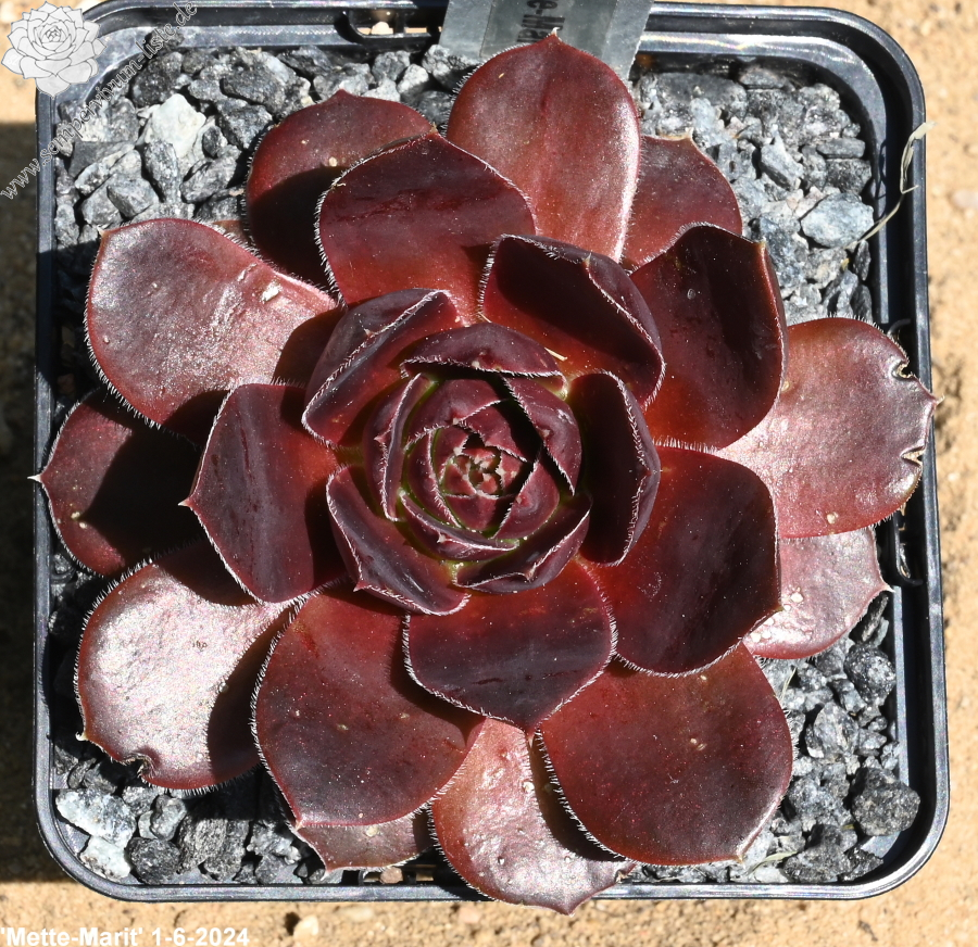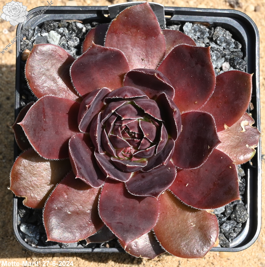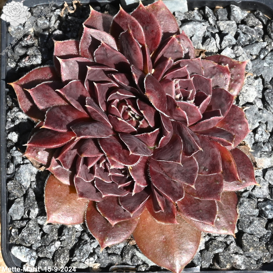 Rosetten bis 8 cm, Blätter lanzettlich, lang bespitzt, purpurrot, Blattränder bewimpert