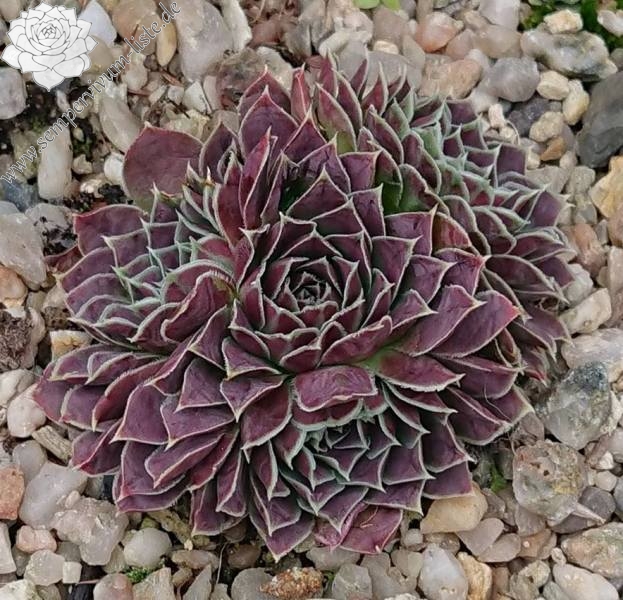 Rosetten bis 5 cm, Blätter lanzettlich, lang bespitzt, resedagrün, obere Blattdrittel pastellviolett , Blattränder hell