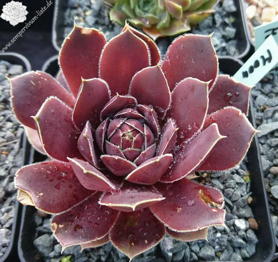 Rosetten bis 6 cm, Blätter eiförmig, kurz bespitzt, dunkles Purpurviolett - fast schwarz