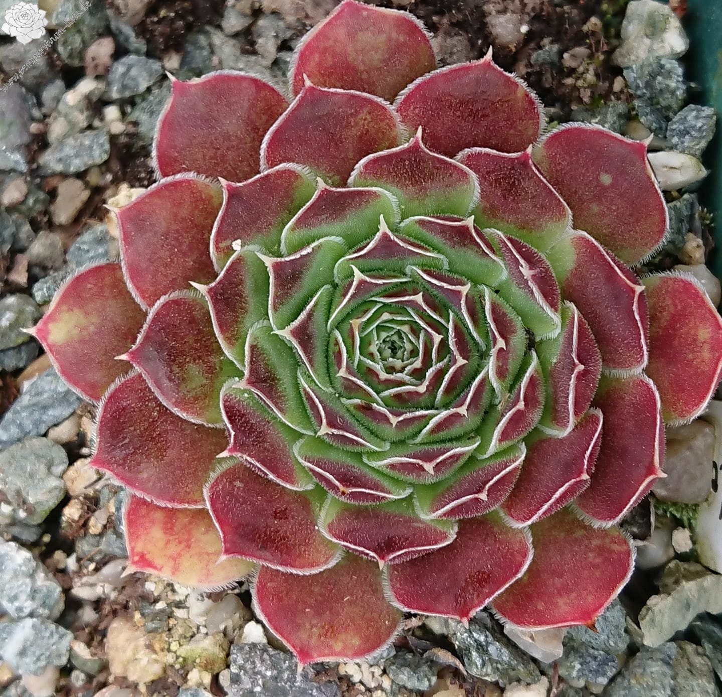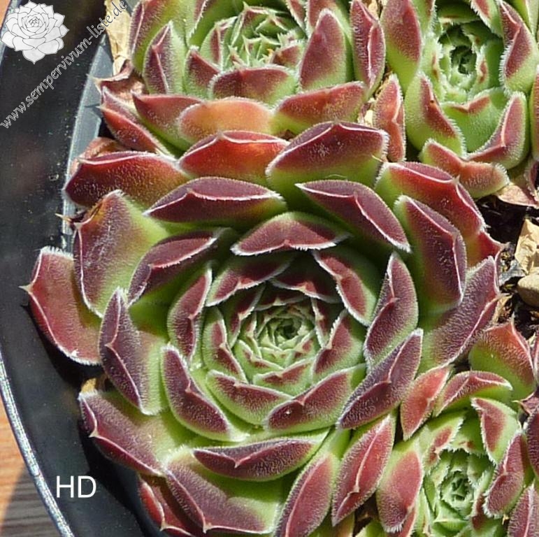 kleine Rosetten, Blätter keilförmig, kurz bespitzt, samtige Substanz, Basis hellgrün, Spitzen orange - rot