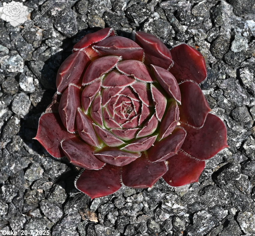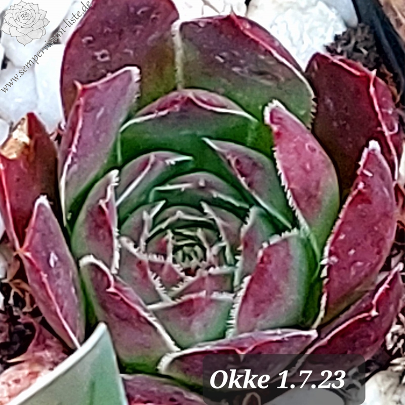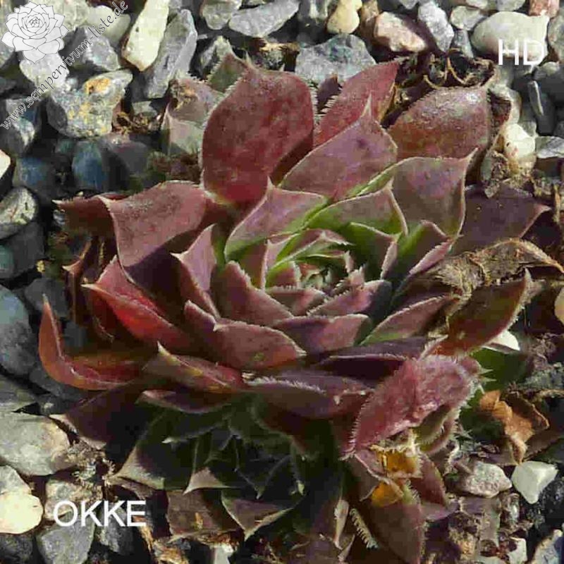 kleine Rosetten, Blätter eiförmig, kurz bespitzt, erdbeerrot - lachsrot, Ränder bewimpert