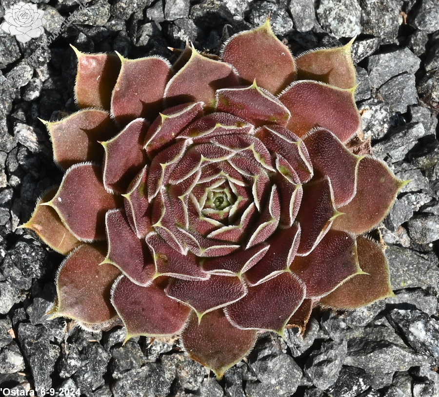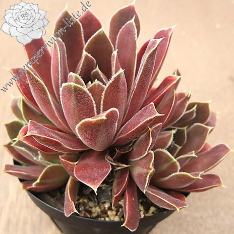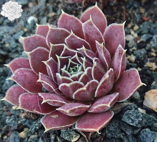 Rosetten 6 cm, Blätter linealisch, lang bespitzt, samtige Substanz, braun - rosa, Ränder hell bewimpert