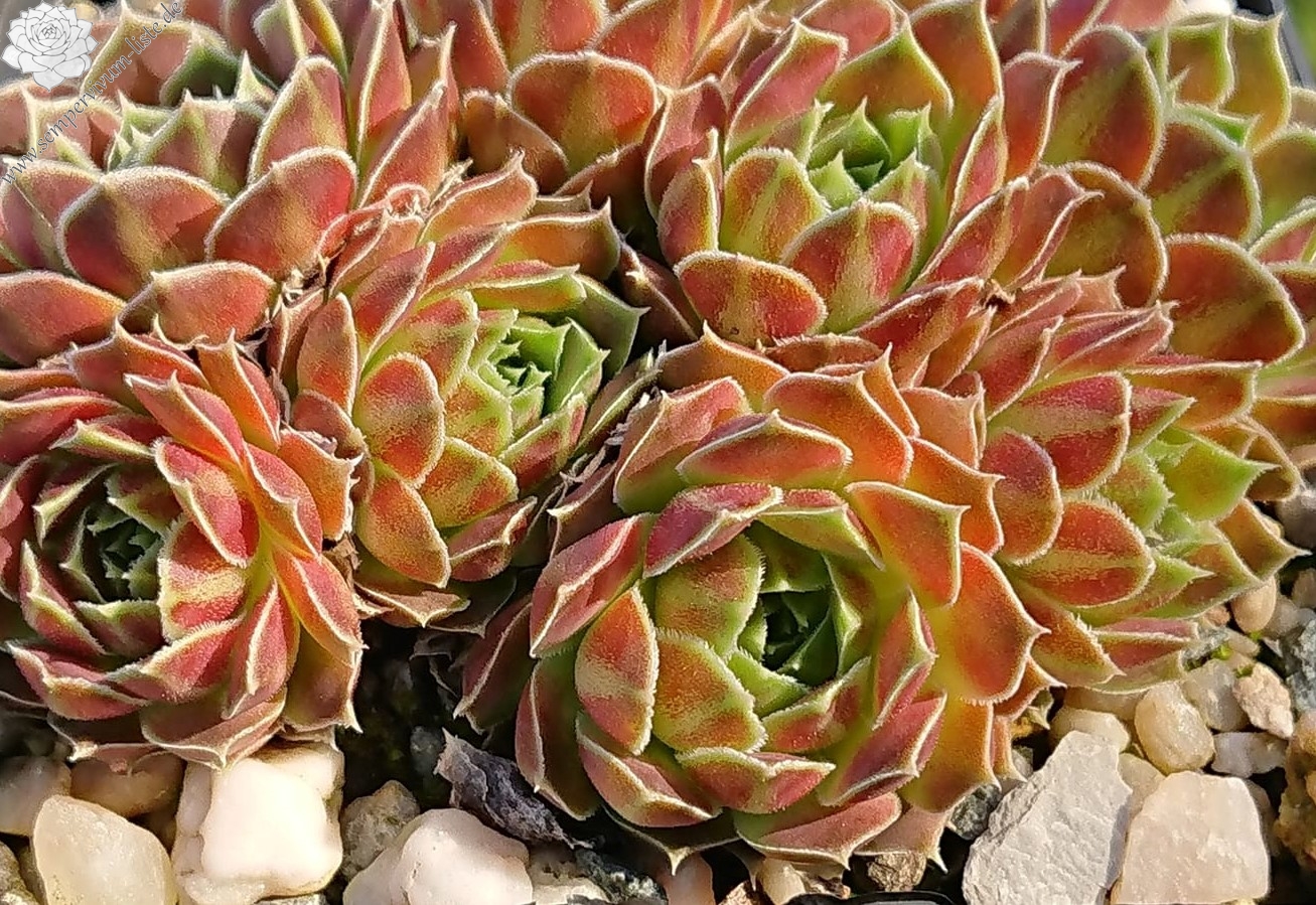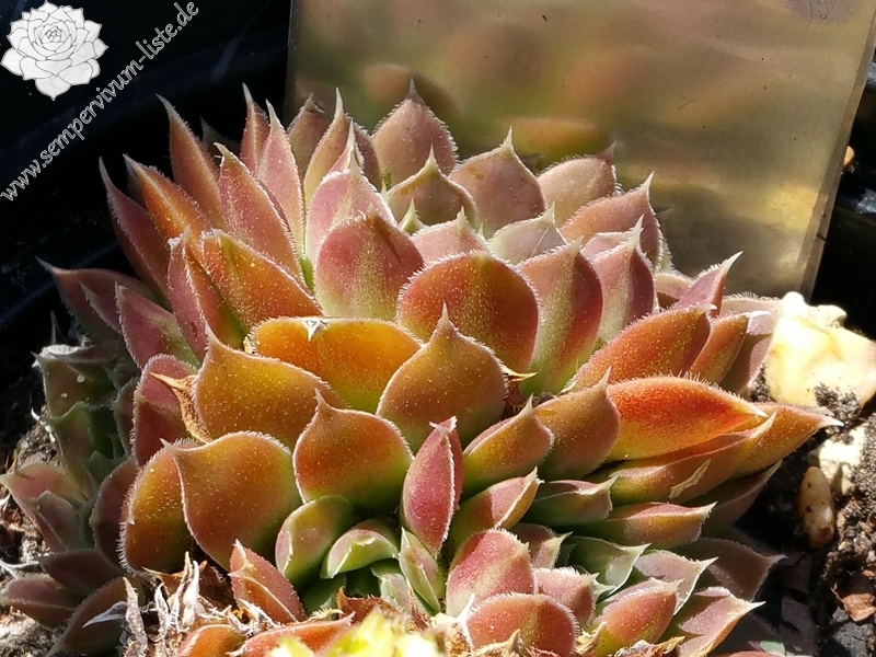 Rosetten 2-3 cm, Mischfarben hell grün - gelb-orange, Blattränder hell, stark bewimpert