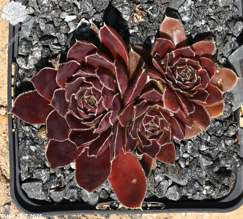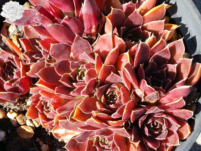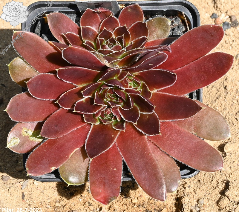 große Rosetten, Blätter lanzettlich, lang bespitzt, dunkelbraun - rot, Blattränder hell bewimpert