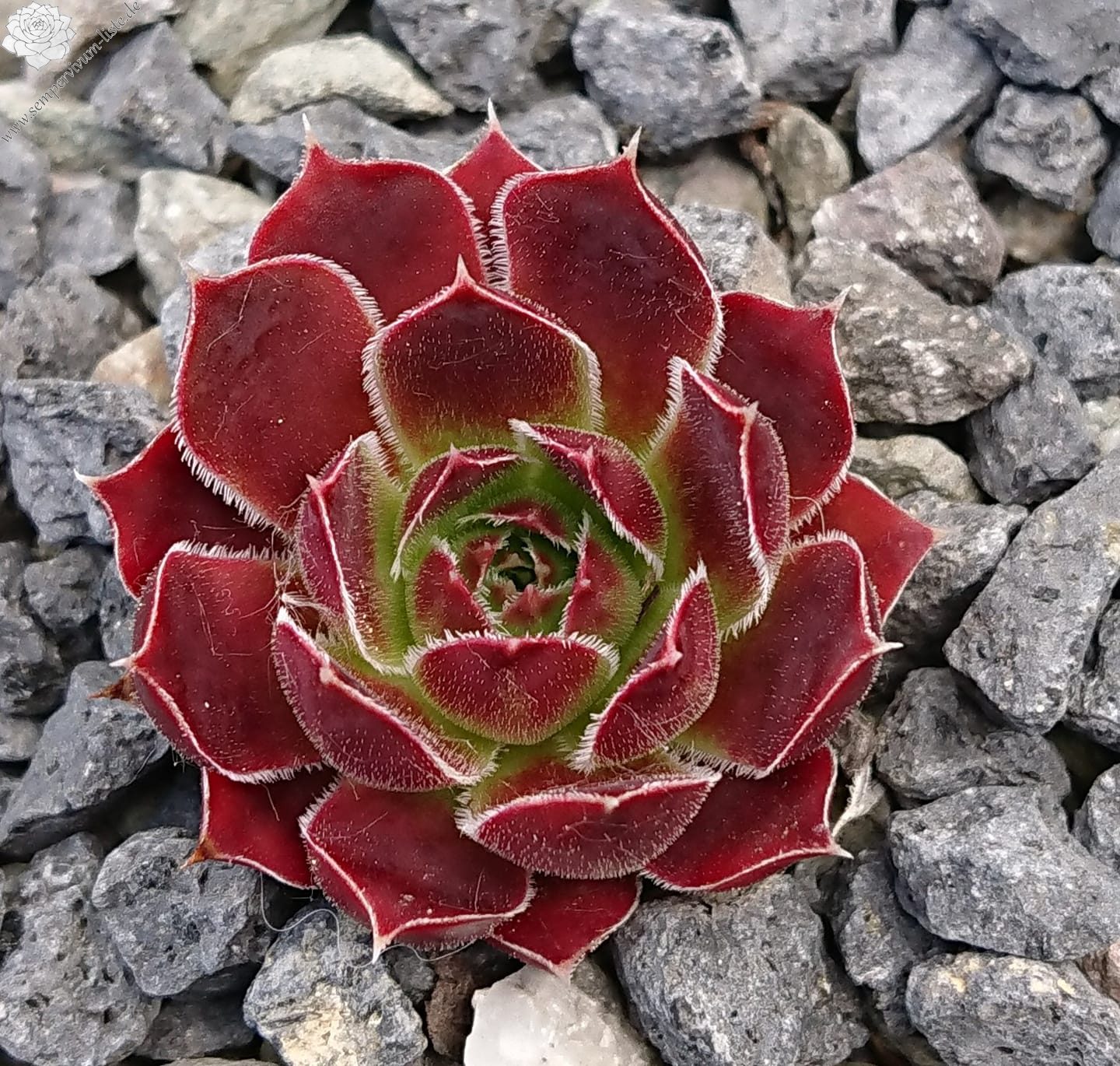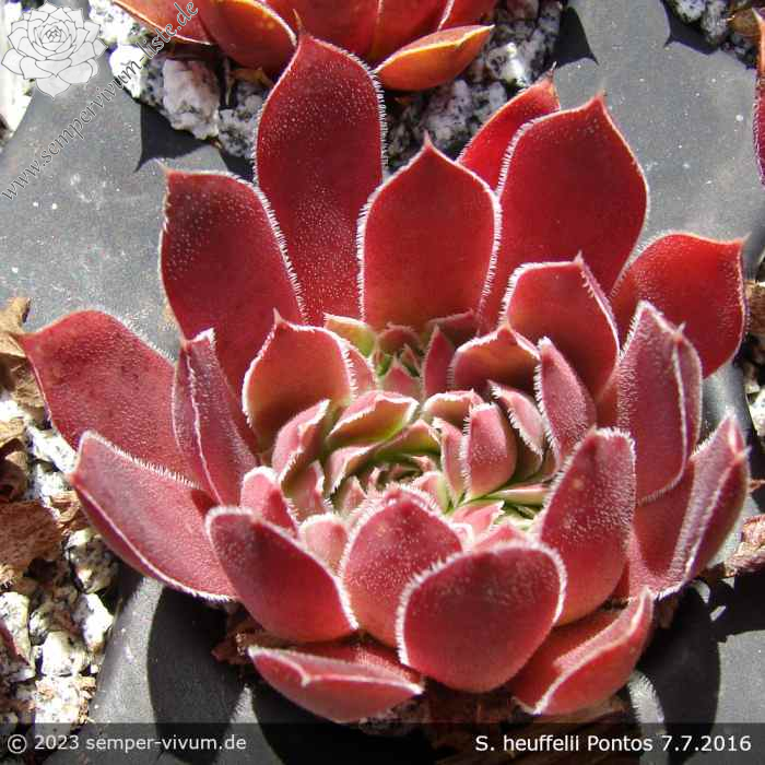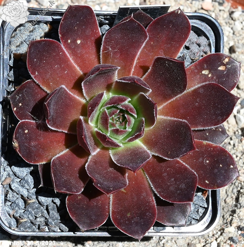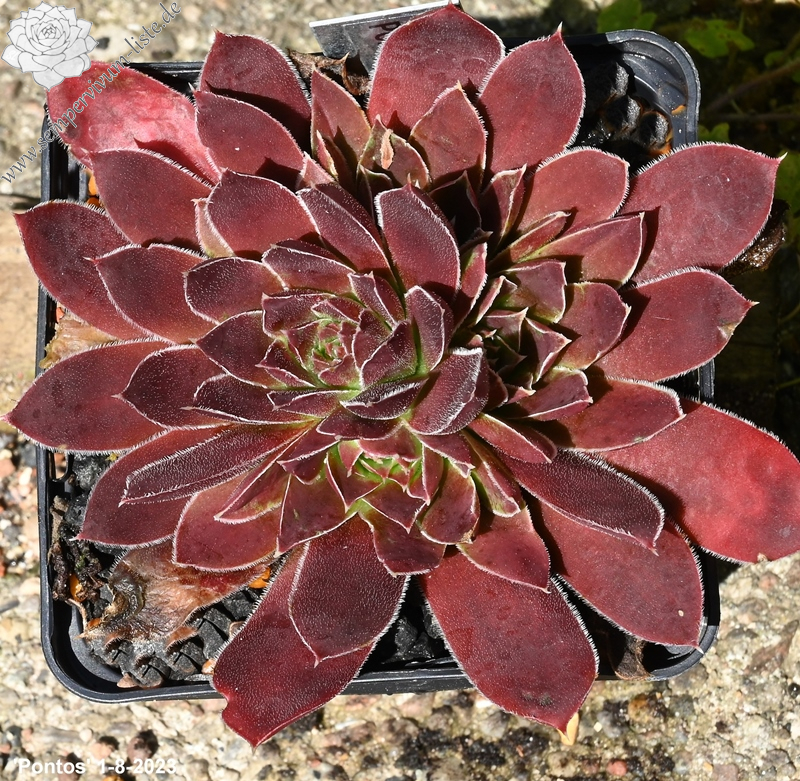 Rosetten bis 6 cm, samtiges rot, Blattränder hell bewimpert