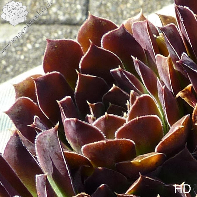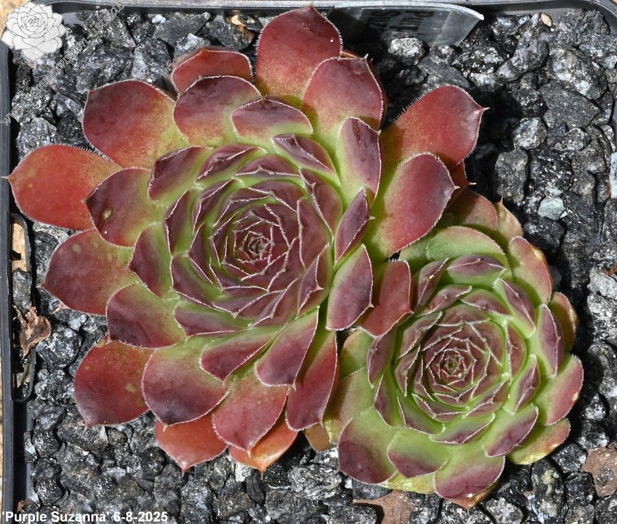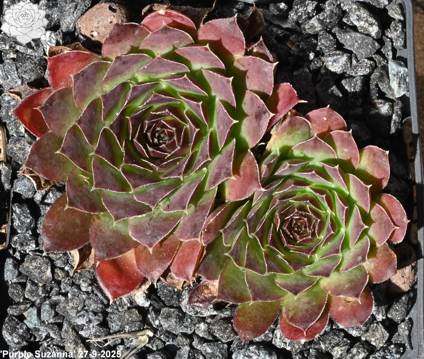 große Rosetten, Blätter spatelig, kurz bespitzt, trübes Lila - Schwarz