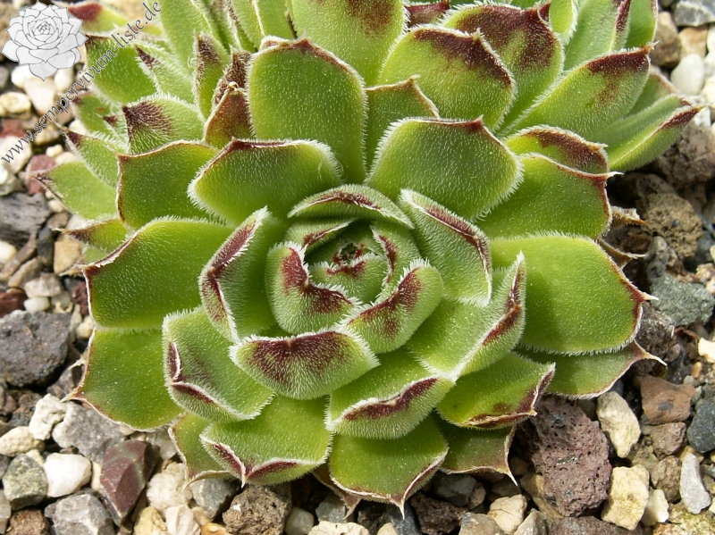 Benannt von Dr. Nixon dem damaligen Leiter der Amerikanischen Sempervivum Gesellschaft, hellgrüne Rosetten mit hellpurpurnen Blattenden mit silbrigen Blatträndern.