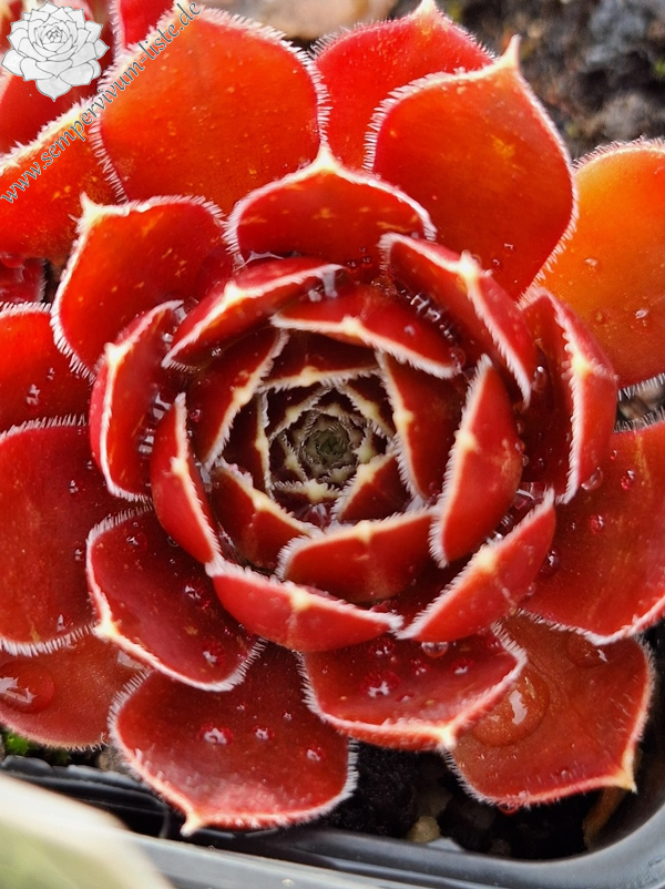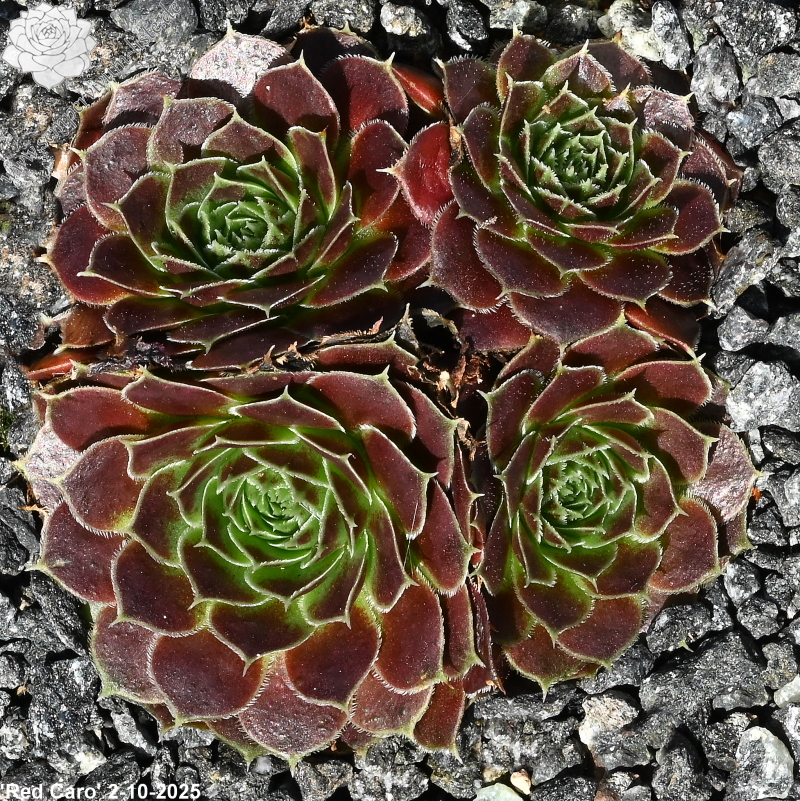 kleine Rosetten, Blätter eiförmig, kurz bespitzt, hellrot zu dunkelrot wechselnd