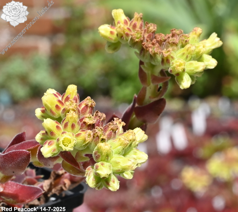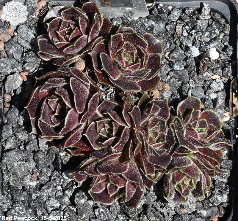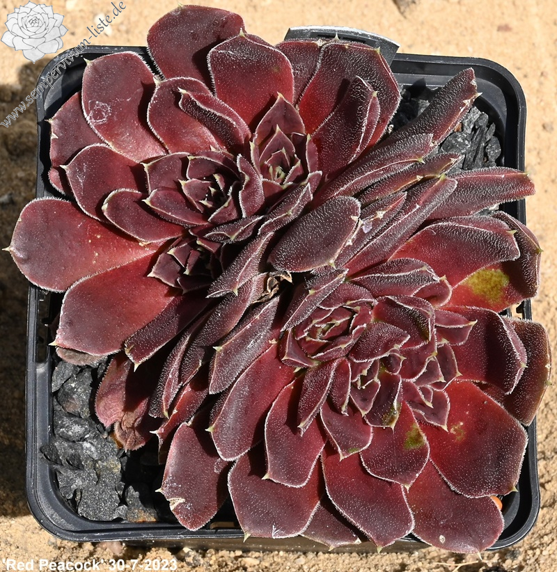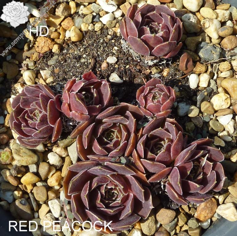 Ein attraktiver Donarsbart mit bezaubernder rosavioletter Färbung. Dazu eine hübsche Form der Rosetten, die auch noch samten überzogen sind, was bei S. heuffelii recht selten zu beobachten ist. Ein beliebter "roter Pfau", wie der Name in deutsche Sprache übersetzt wird