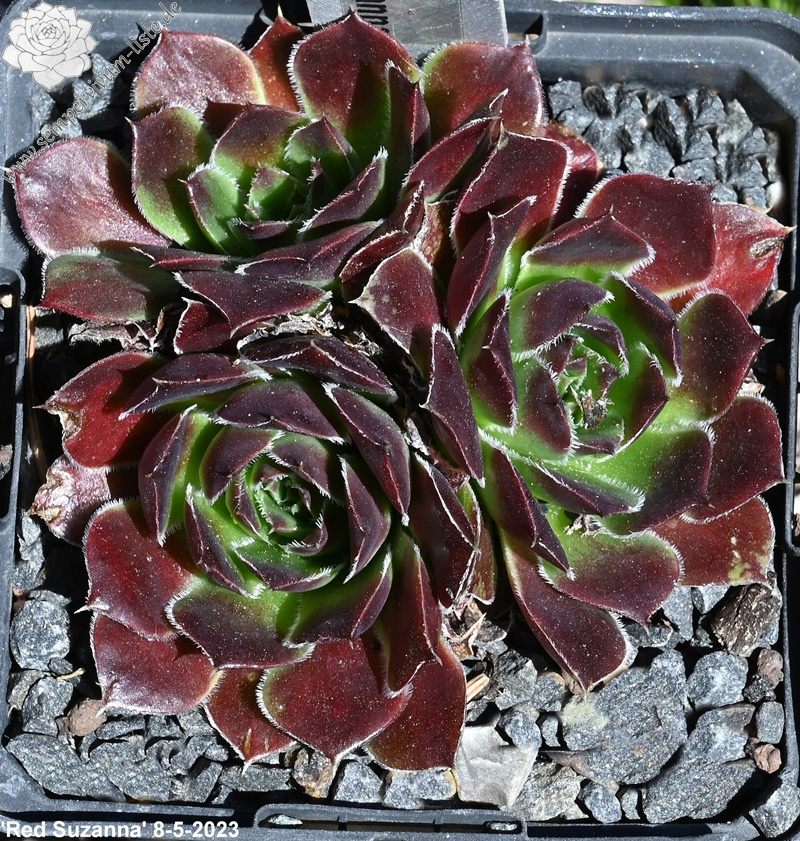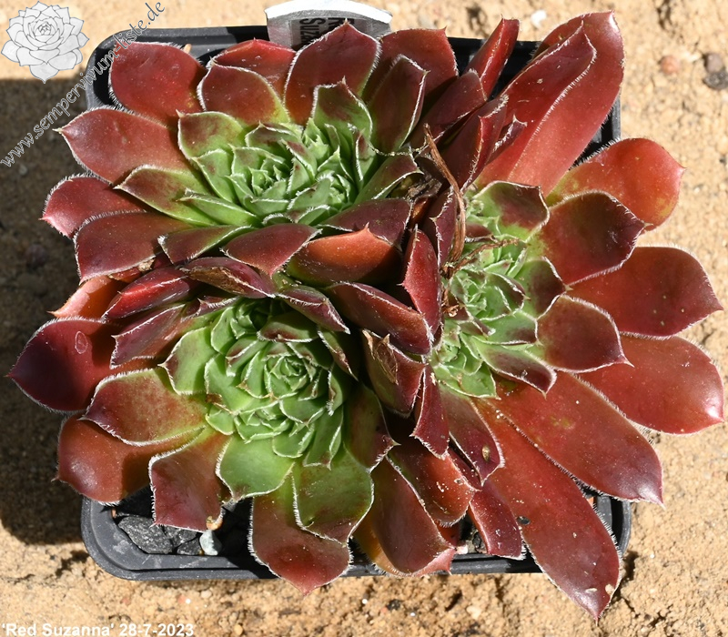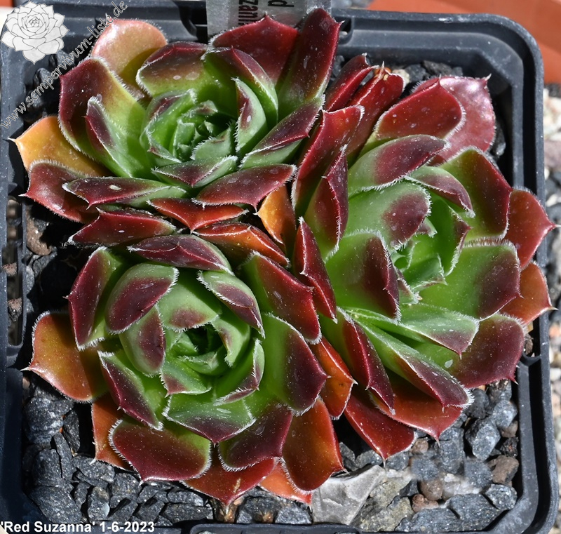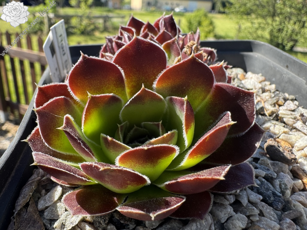 kleine Rosetten, Blätter eiförmig, kurz bespitzt, Basis helles grün, Rest rotbraun - orange , Ränder bewimpert