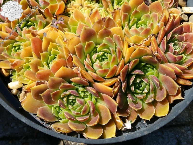 kleine Rosetten, Basis grün, helles rot-rosa, Blattränder hell, bewimpert