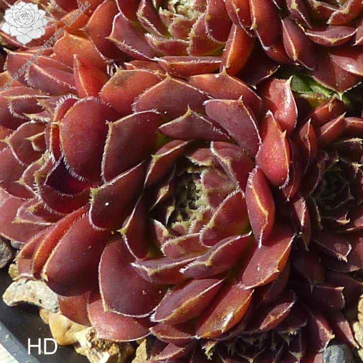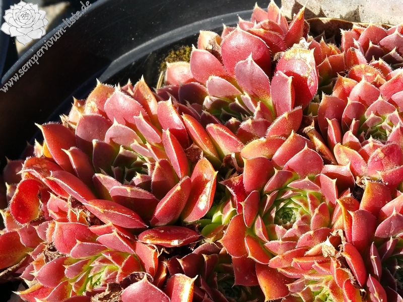 kleine Rosetten, Blätter rundlich, kurz bespitzt, burgunderrot - braun