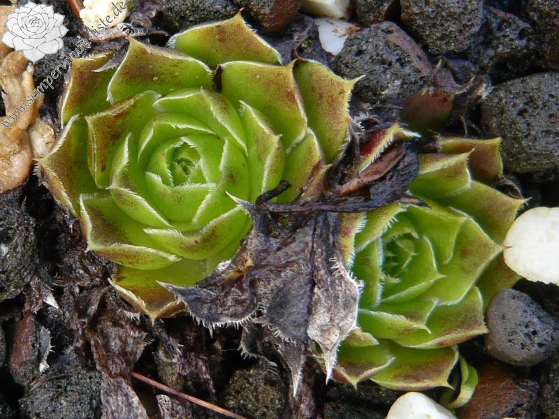 kleine Rosetten, Blätter keilförmig, lang bespitzt, Mischfarbe gelb - grün, Spitzen hellbraun - rosa