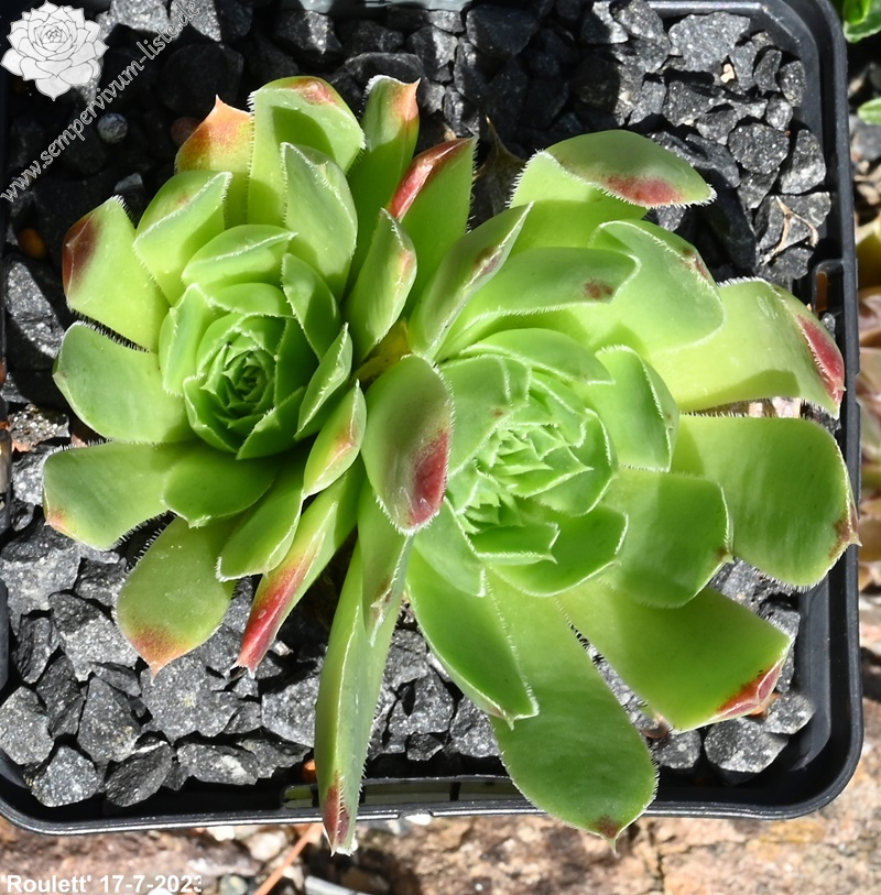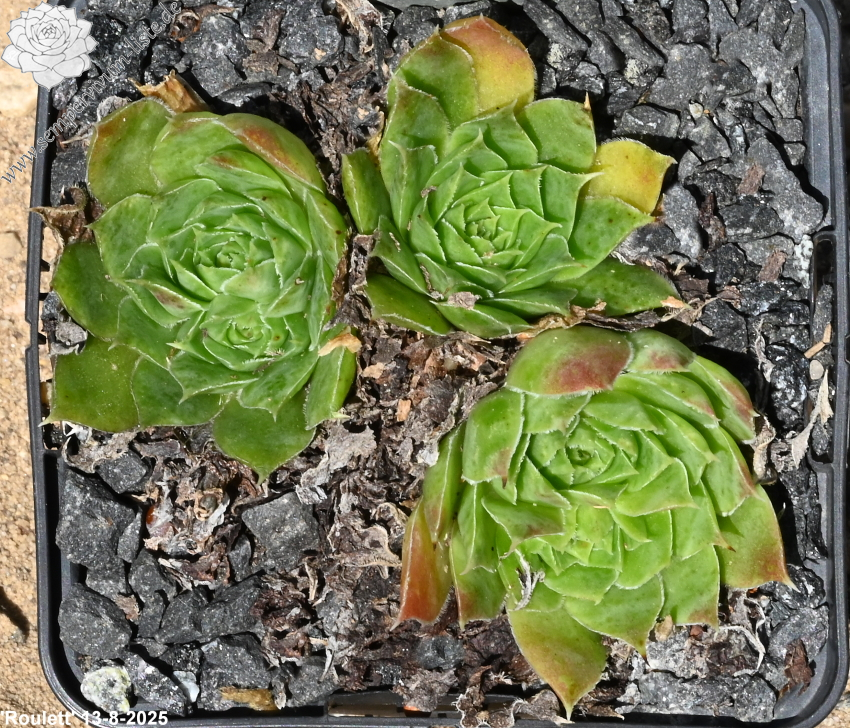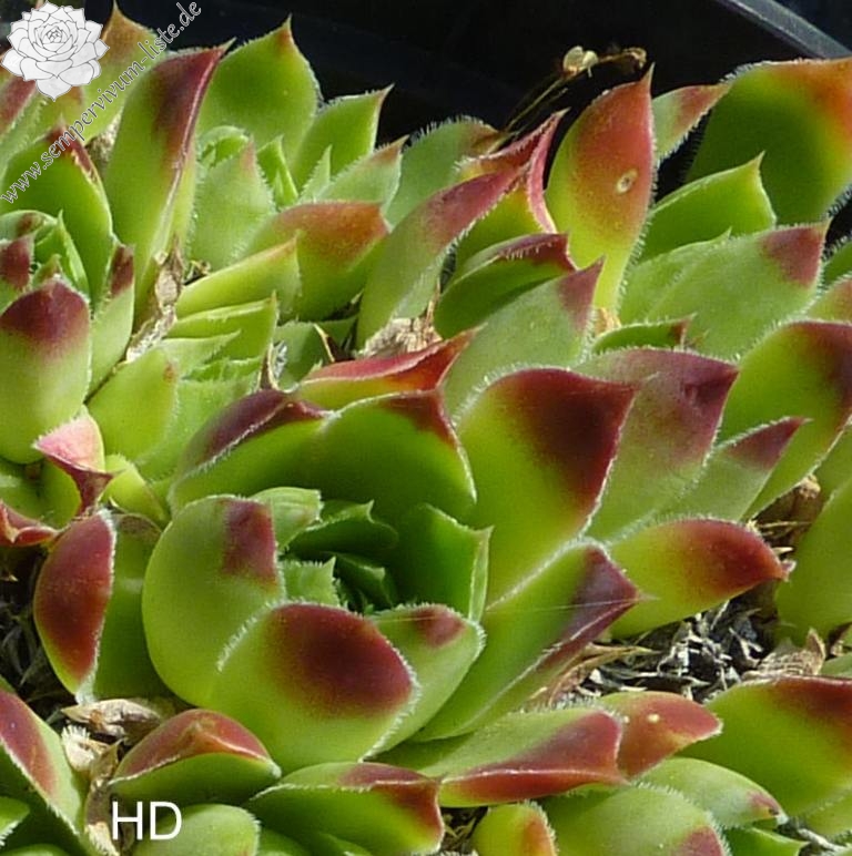 kleine Rosetten, Blätter lanzettlich, lang bespitzt, grasgrün, rotbraune Spitzen