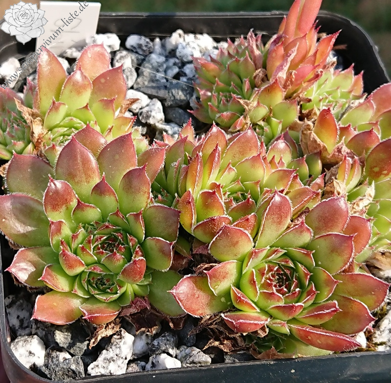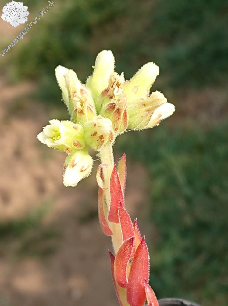 Rosette gelbgrün, Enden rosa, 5 cm, Blüte weiß