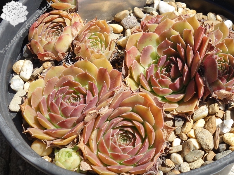 Rosetten bis 8 cm, Blätter rundlich, kurz bespitzt, hellrot, Basis lindgrün, bewimpert