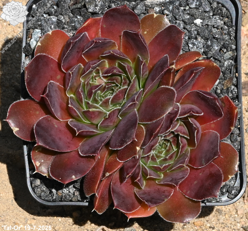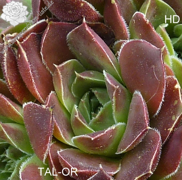 Rosettenn bis 5 cm, Blätter lanzettlich, lang bespitzt, purpurrot - braunrot, Basis hellgrün, Blattränder bewimpert