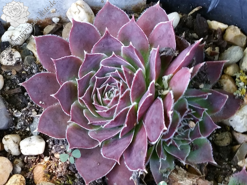 Rosetten 5 cm, Blätter keilförmig, lang bespitzt, rotbraun - altrosa, Ränder bewimpert