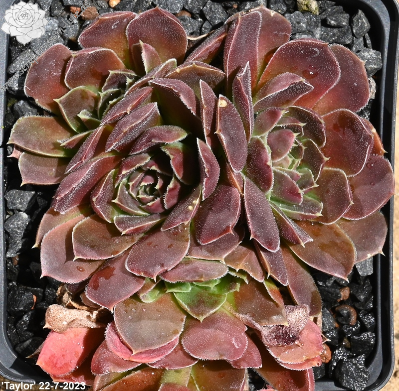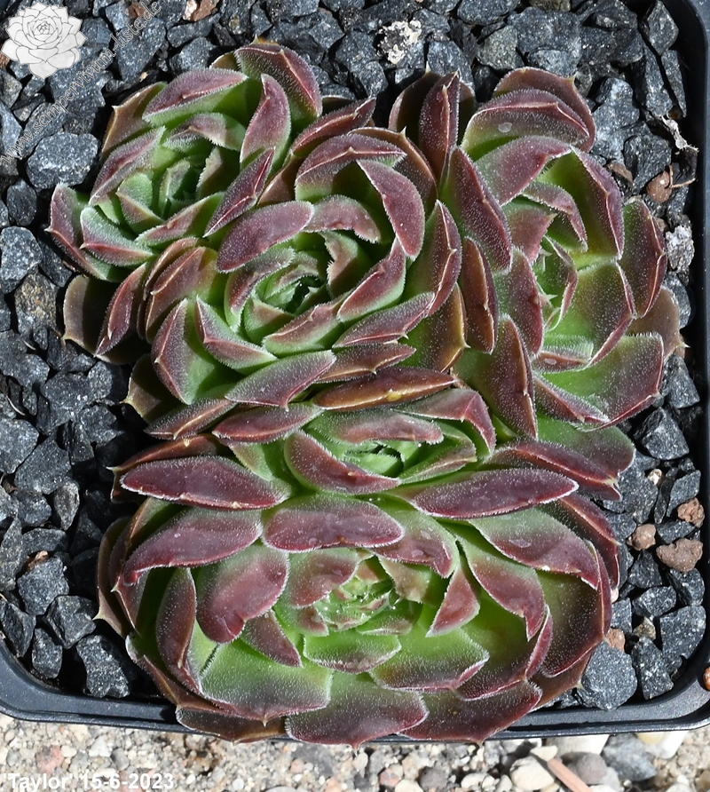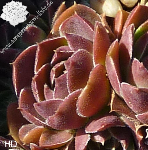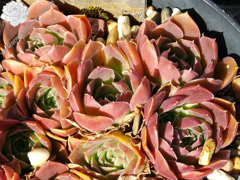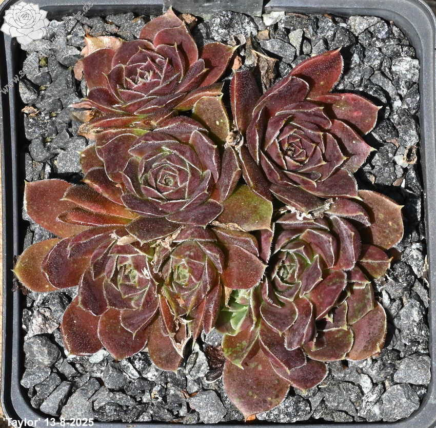 Wieder eine belgische Sorte mit leicht samtenen Blättern. Das Zentrum der braunrosafarbenen, eher kleinen Rosetten leuchtet im Frühjahr in apfelgrünem Pastel.