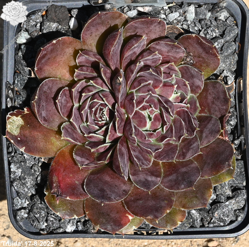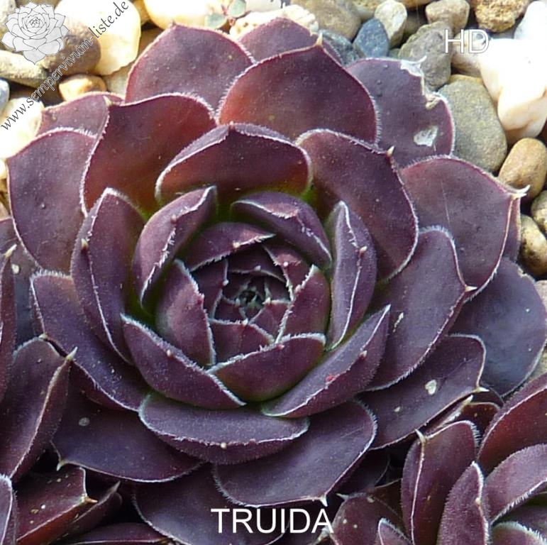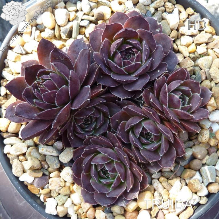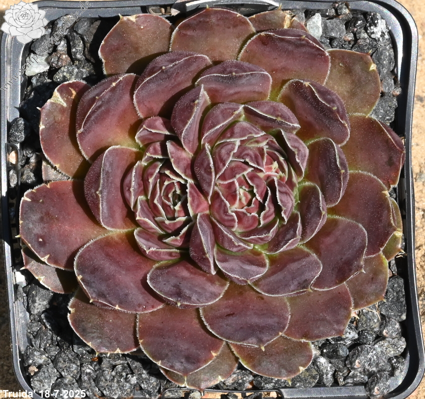 Rosetten bis 7 cm, Blätter rundlich, kurz bespitzt, signalviolett - rotlila, Blattränder bewimpert