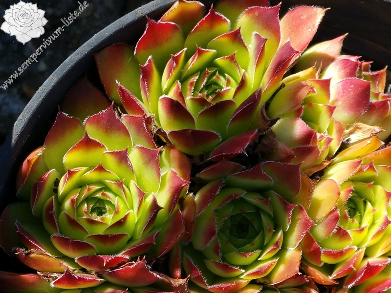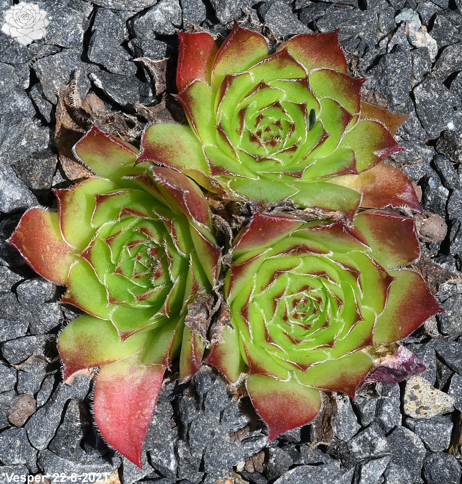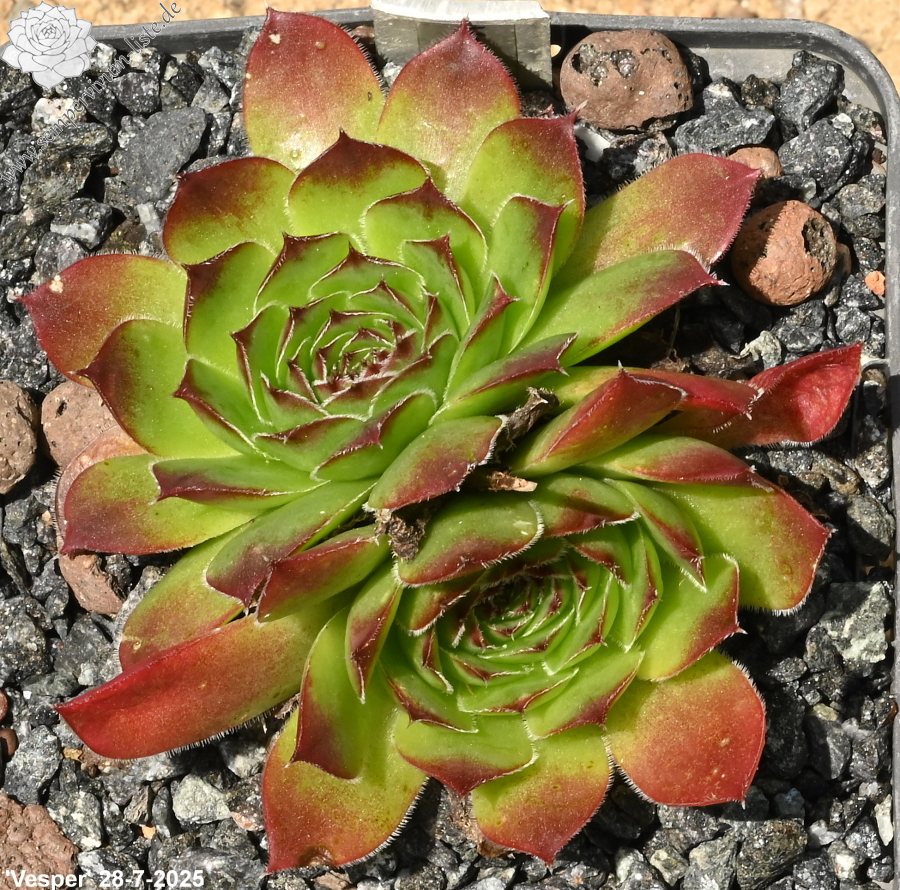 Rosetten 6 cm, Blätter lanzettlich, lang bespitzt, helles grün, Spitzen dunkles rot - braun, bewimpert
