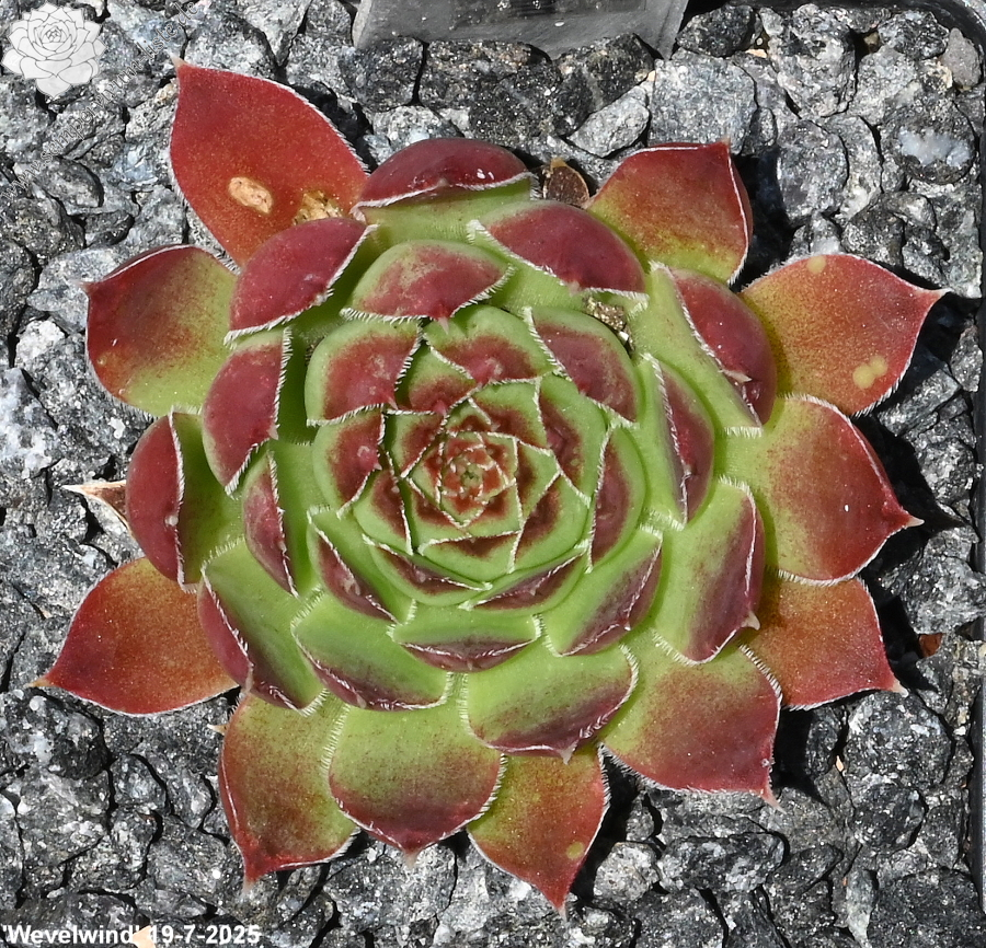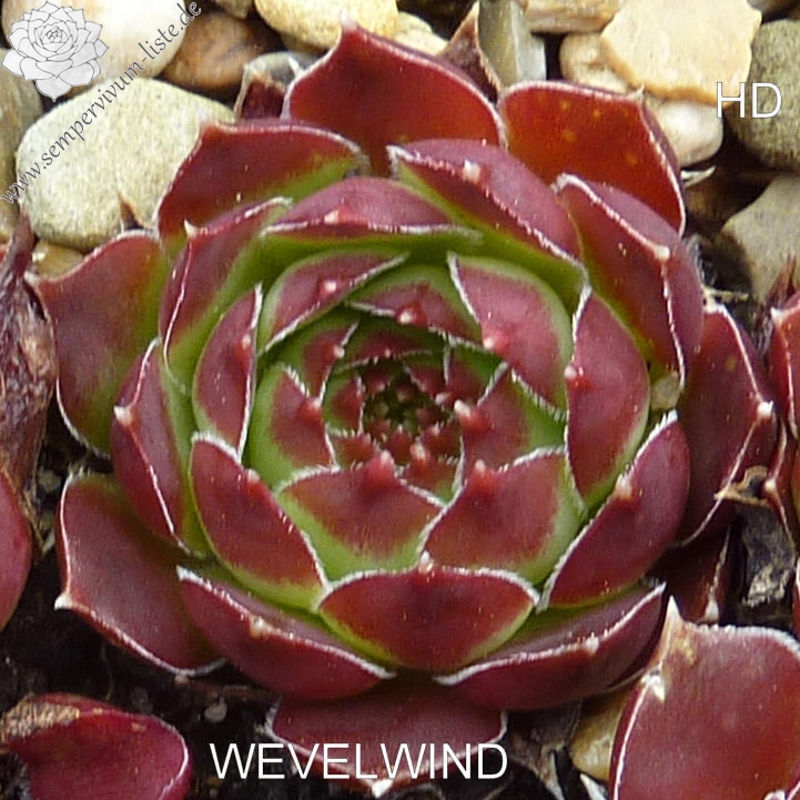 kleine Rosetten, Blätter oval, kurz bespitzt, weinrot, Basis hellgrün