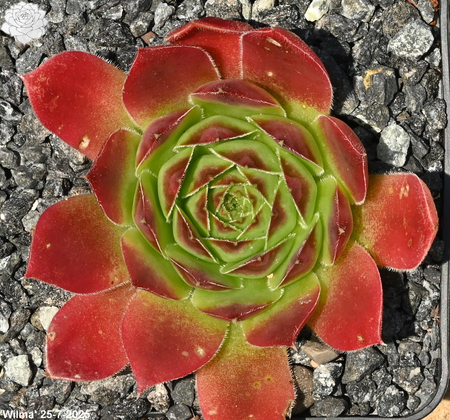 kleine Rosetten, Blätter eiförmig, kurz bespitzt, Herz lindgrün, Spitzen helles Rot, bewimpert