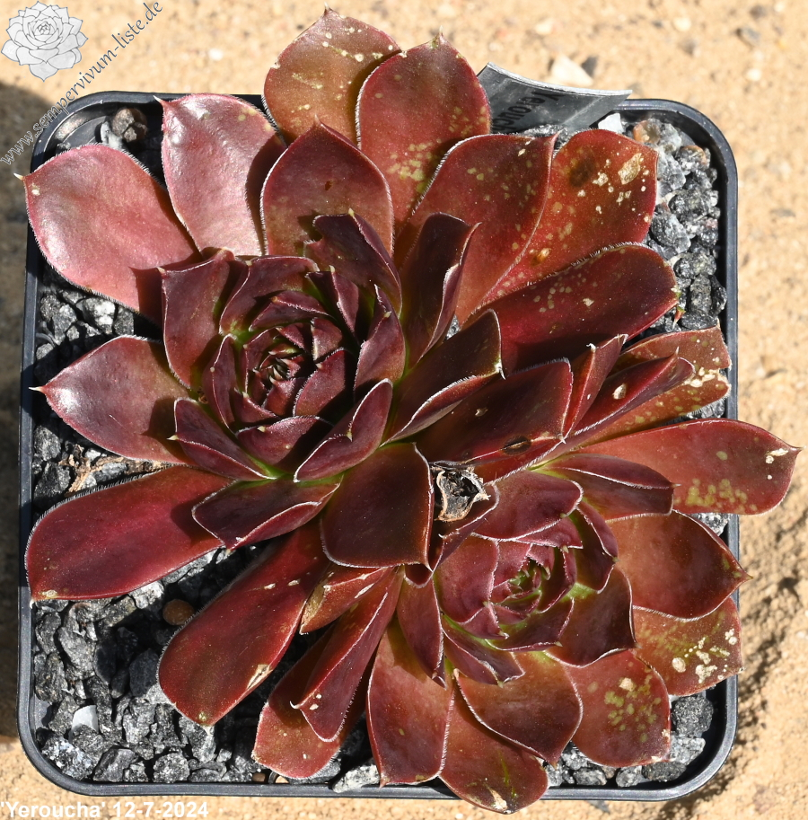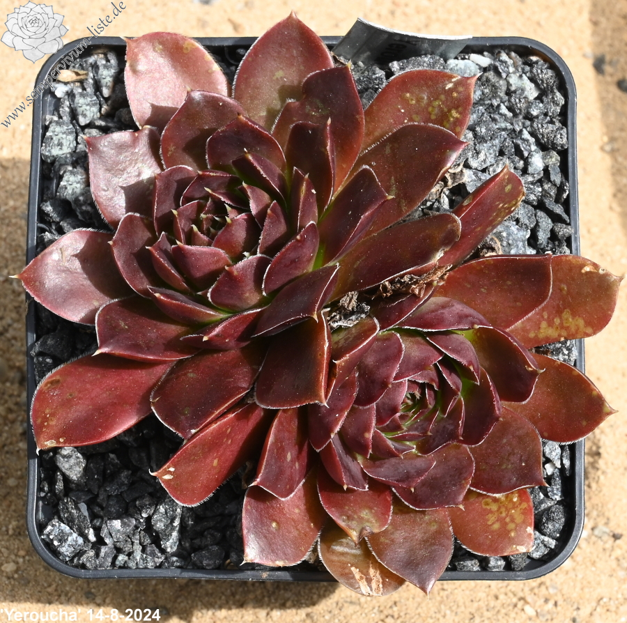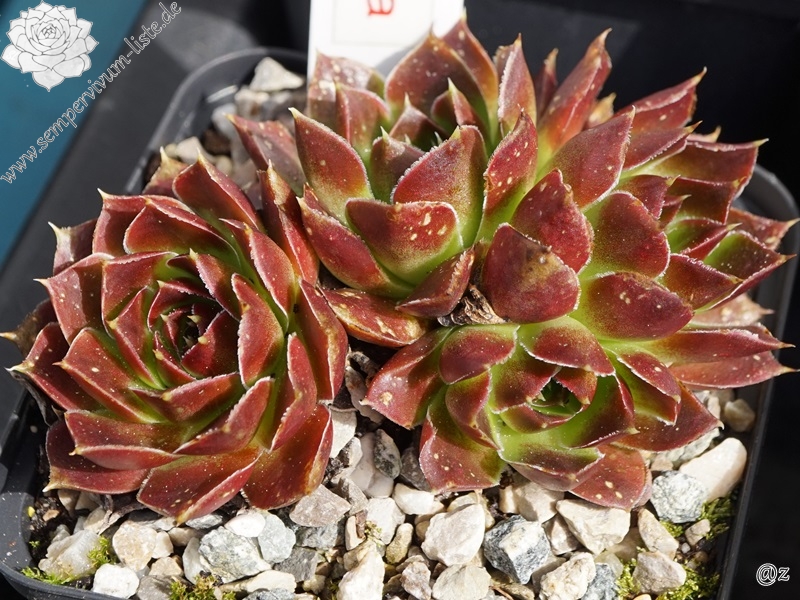 Rosetten bis 8 cm, Blätter oval, lang bespitzt, braunrot