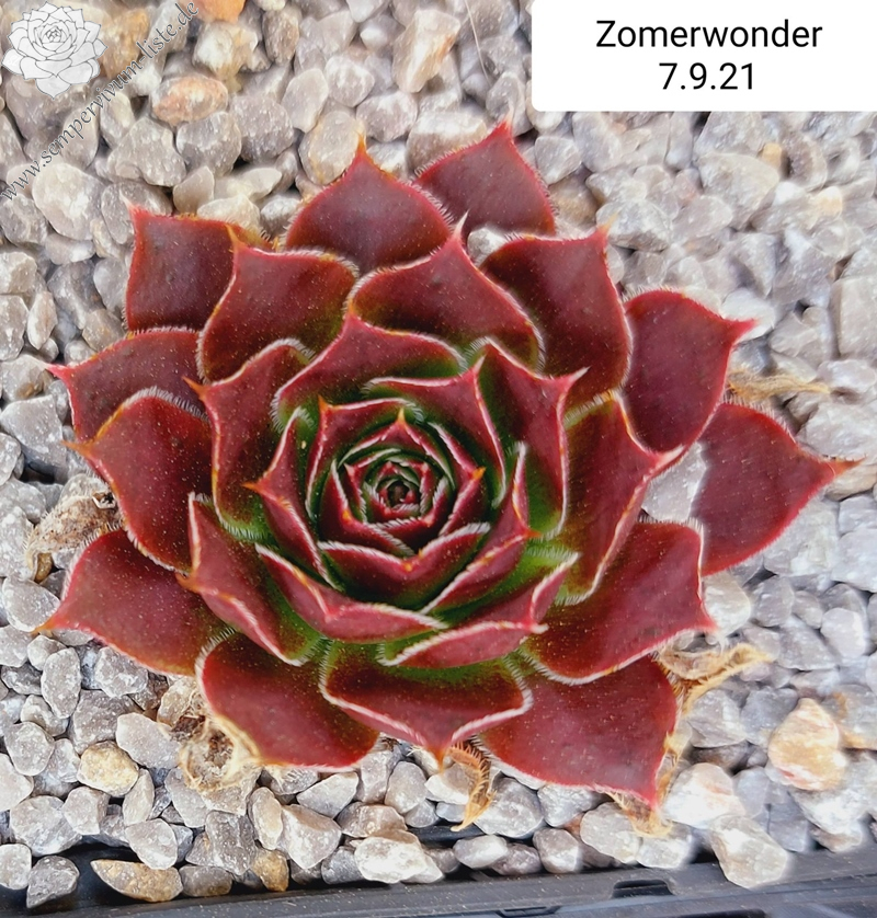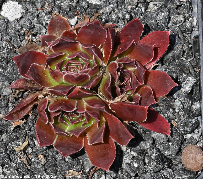 Rosetten bis 5 cm, Blätter lanzettlich, lang bespitzt, rotlila, Blattränder bewimpert