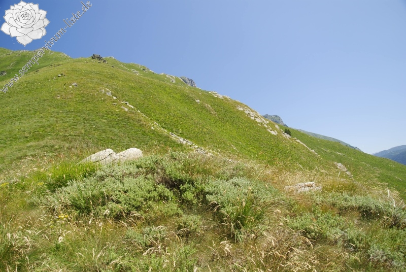 Der Naturstandort, den ich in diesem Reisebericht vorstellen möchte, liegt über der Grenze des Waldes, man kann sagen in den oberen Teil des Nebengebirgskammes Dalgia Rid. Auch da oben sind die Abhänge sehr steil und es gibt zahlreiche kleine Felsen oder auch Steinhaufen da. An einem Steinhaufen habe ich Sempervivum erythraeum an einem schönen Naturstandort gefunden und beobachtet. Dieser Naturstandort liegt in der Höhe von 2015 Meter über dem Meerspiegel, das Gestein wird durch Granit gebildet.