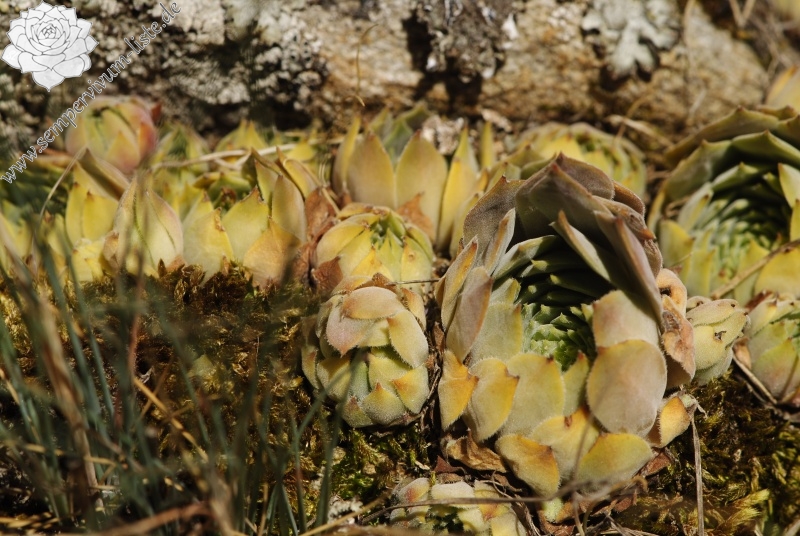 An diesem Naturstandort wächst eine große Menge der Rosetten aller Größen. Die Rosetten wachsen da in den kleinen Gruppen oder in den Kolonien vor allem in den Spalten zwischen den großen Steilen, an den Rändern der großen Steine und auch teilweise im Gras bei dieser großen Steinen. Weil es lange trocken war und weil es lange nicht geregnet hat, waren die meisten Rosetten teilweise geschlossen in der Zeit meines Besuches (heißer Sommer 2015), trotzdem waren alle Rosetten am Naturstandort in guten Zustand.