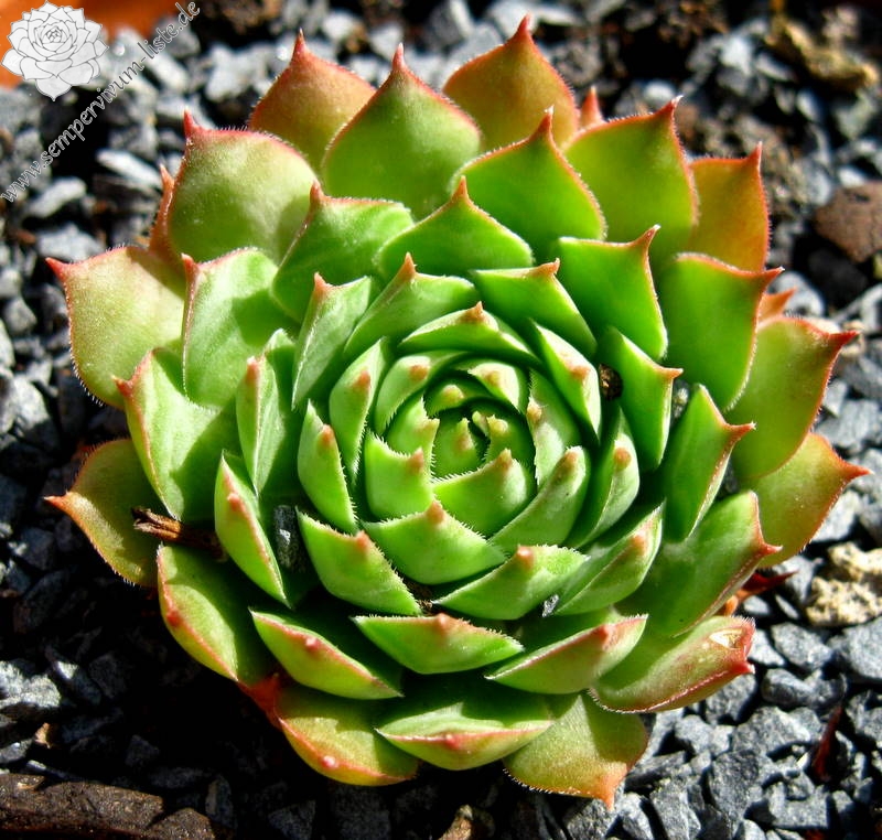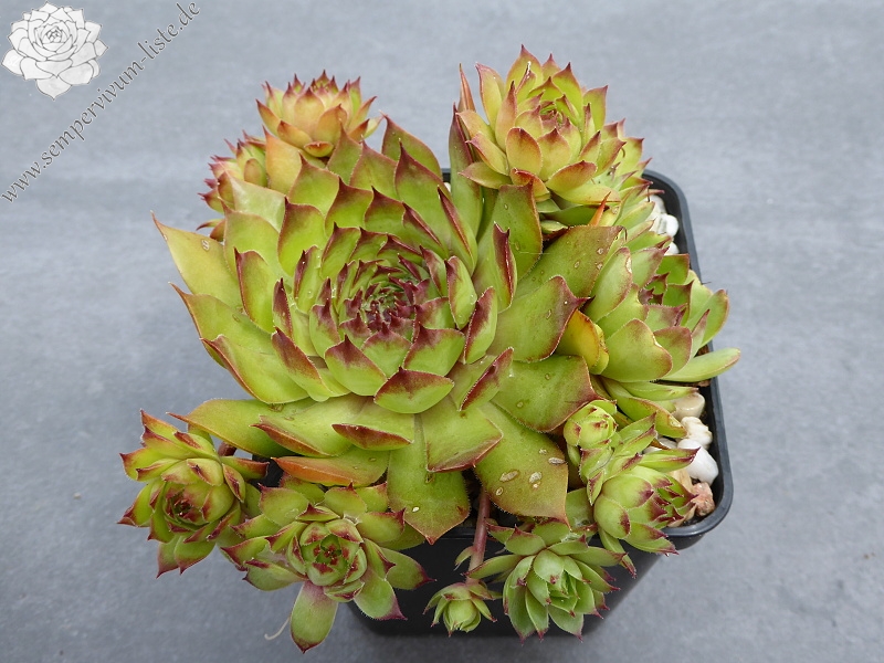 Eine nette Züchtung im S. tectorum Look. Die apfelgrünen Blätter sind lang, orangebraun bespitzt. Der "allmächtige Herrscher" wurde bereits in den 70er Jahren ausgelesen und benannt.