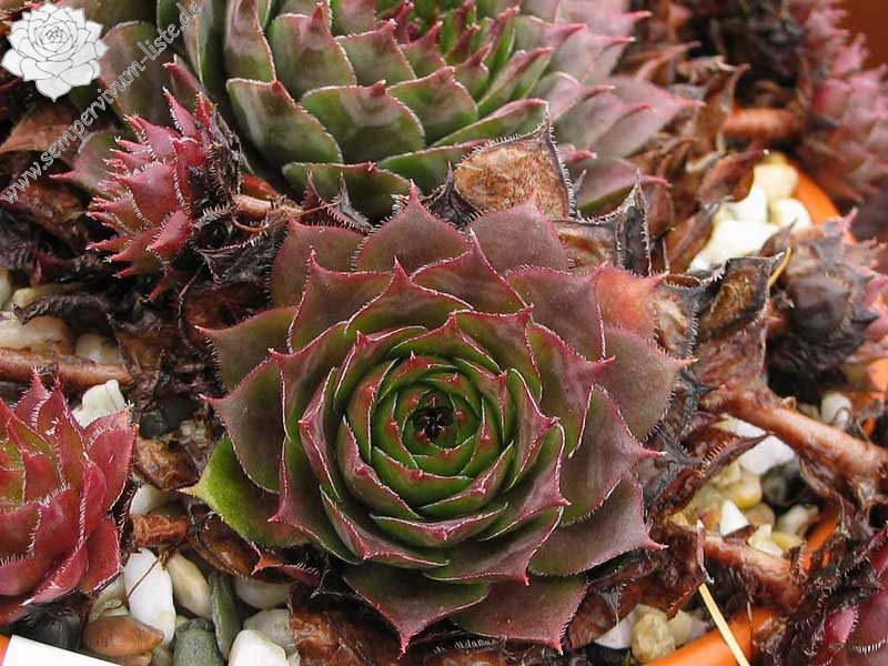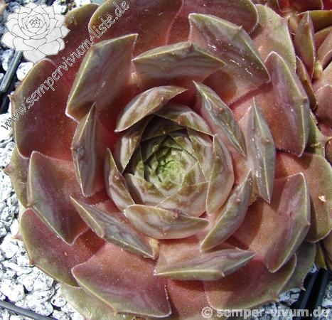 Ein belgischer Riese von Roger Wynnants aus den 80er Jahren. Die breiten Blätter zeigen ganzjährig unterschiedliche Töne von Olivgrün bis Braungrau mit rosafarbenem Touch. Sehr attraktiv ist auch die Rosettenform.