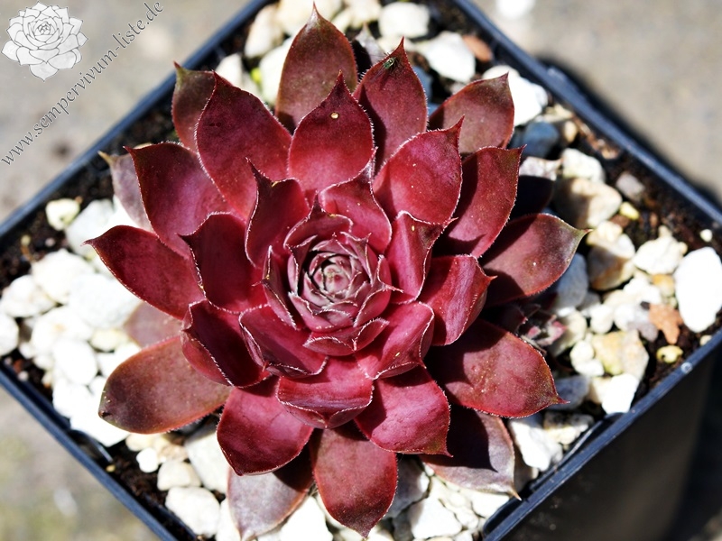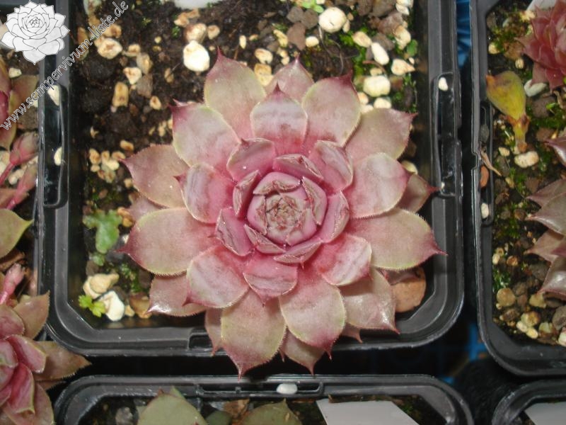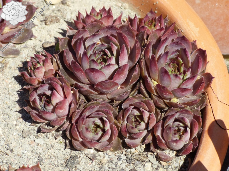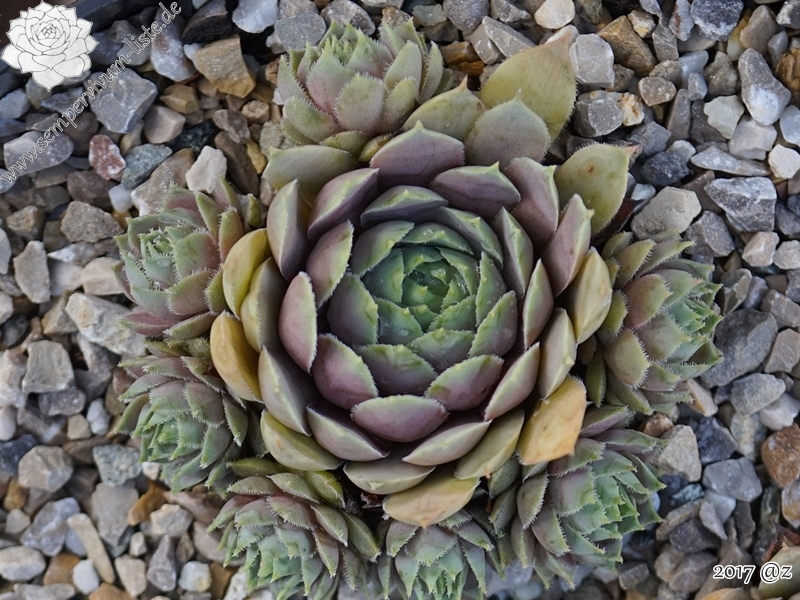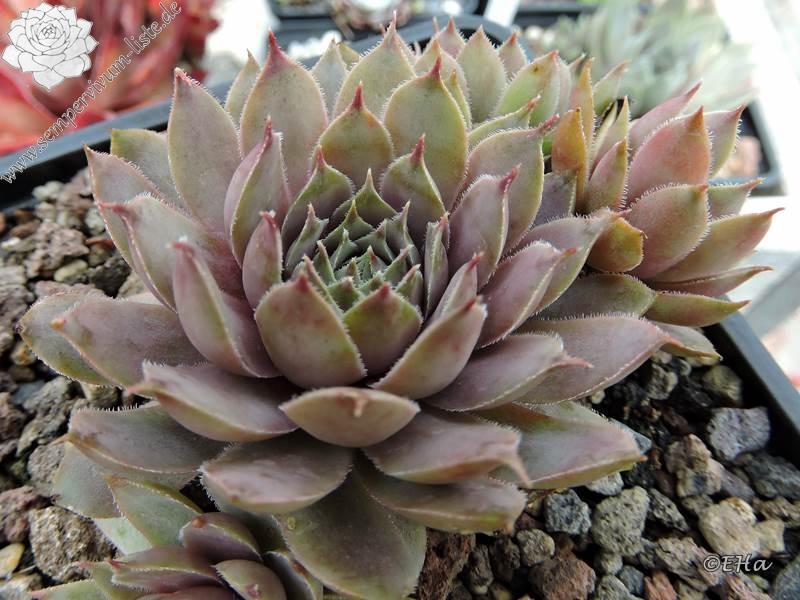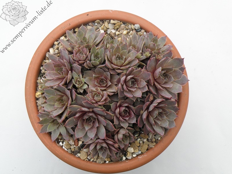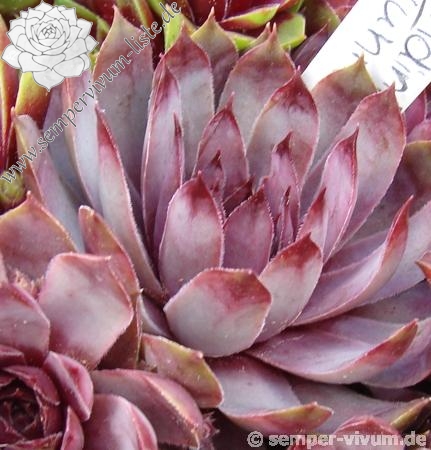 Eine recht neue Hybride aus der Tschechischen Republik von 2011. Die Rosetten verfärben sich während des ganzen Jahres in unterschiedlichste violette Töne. Sie messen einen Durchmesser von etwa 5 Zentimetern.