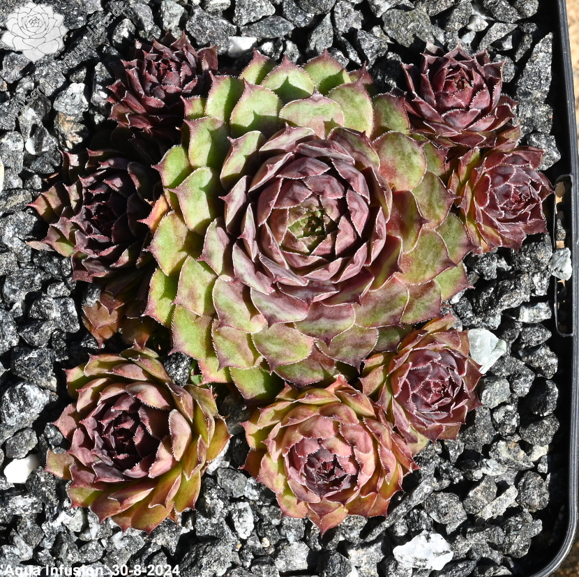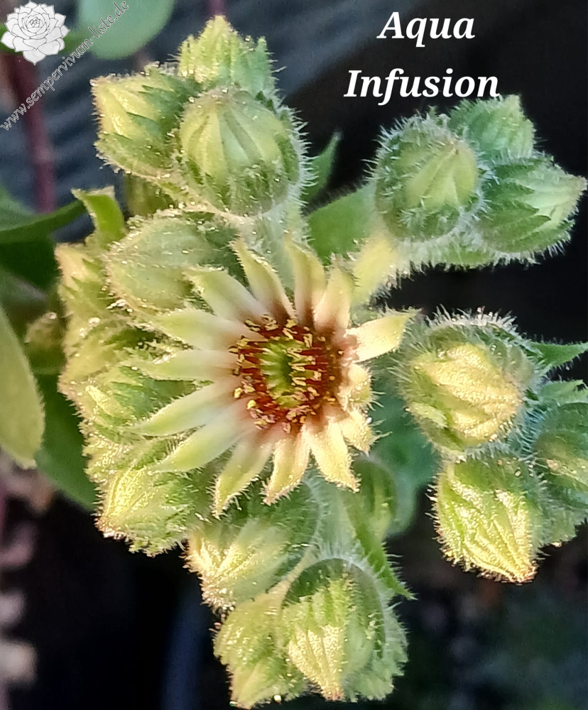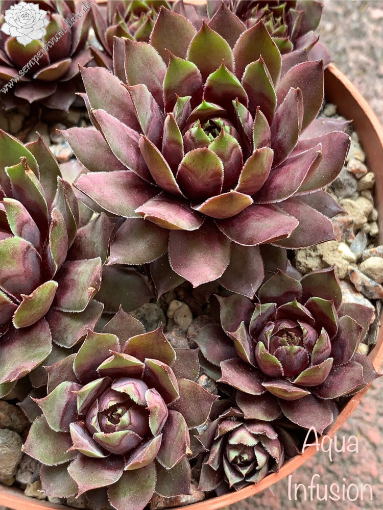 Sempervivum 'Aqua Infusion' ist eine neuere Züchtung aus England, die mir gut gefällt! Die auffallend frischen Farben fallen auf. Die Rosetten erreichen einen Durchmesser von 8cm und sprossen gut. Besonders interessant sind die kleinen roten Blattspitzen!