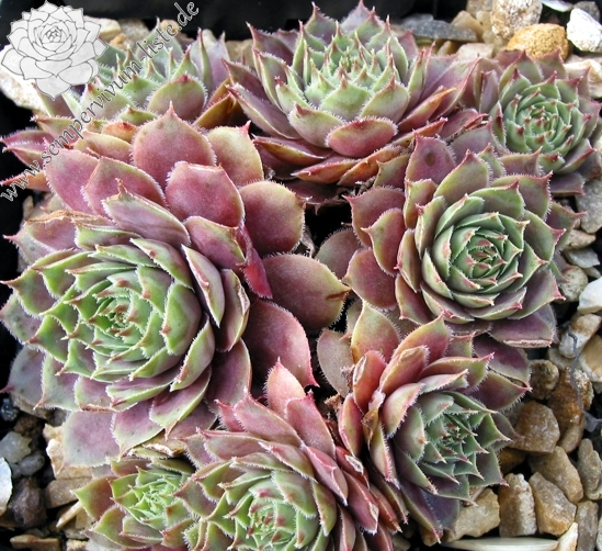 Ein kräftig gefärbter Typ, mit einem klasse Farbspiel. Die mittelgroßen Rosetten bilden schöne dichte Polster. Leider nur wenige Rosetten.