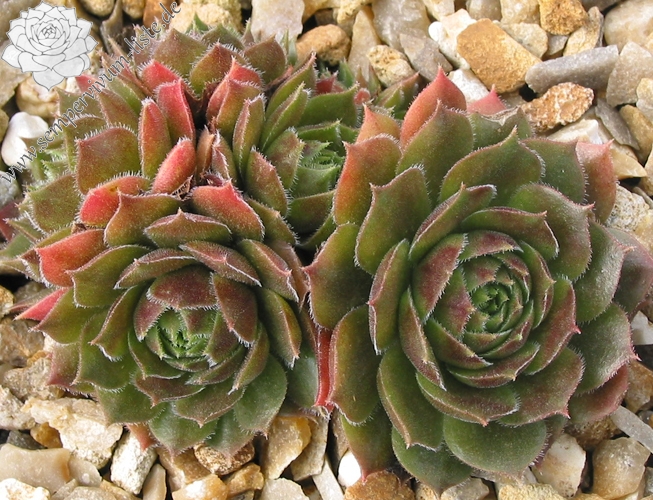 Rosetten mittlerer Größe, pink -rote Rosetten, in der Mitte zu bronce - grün wechselnd