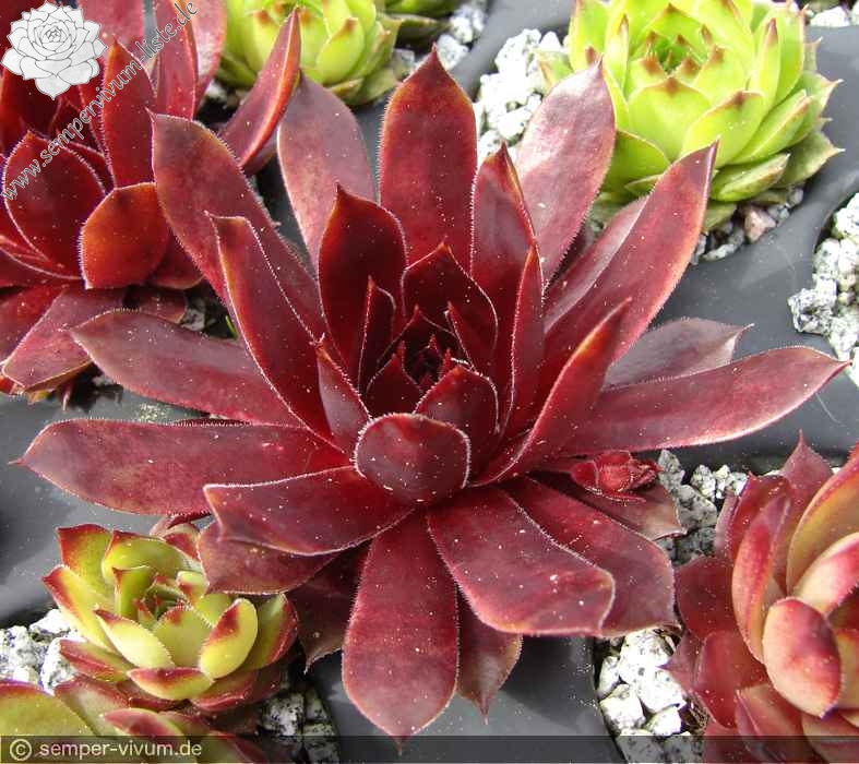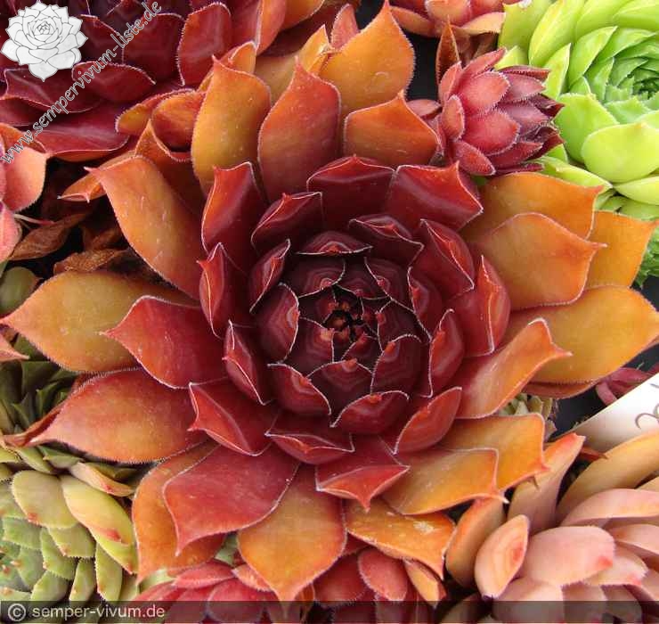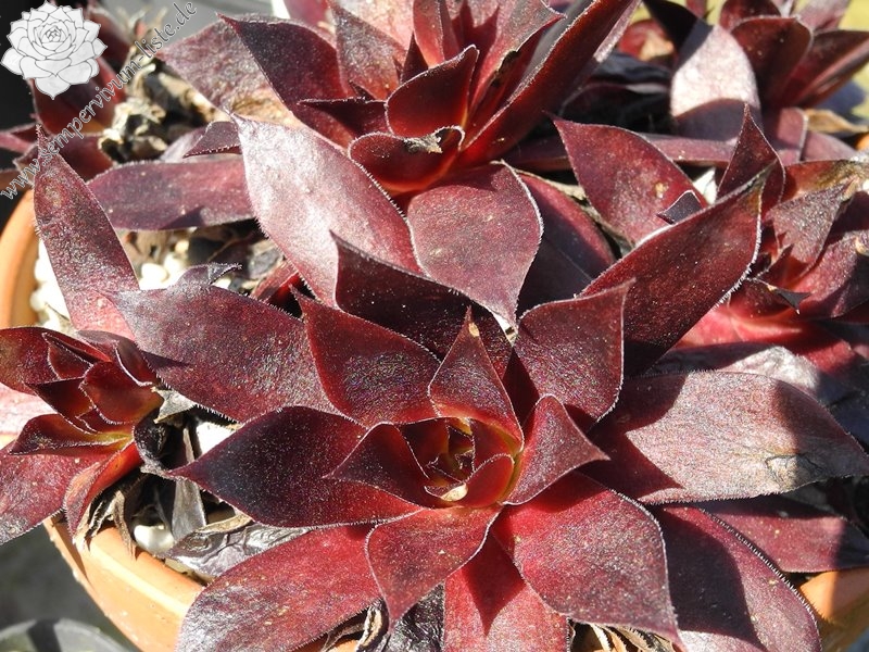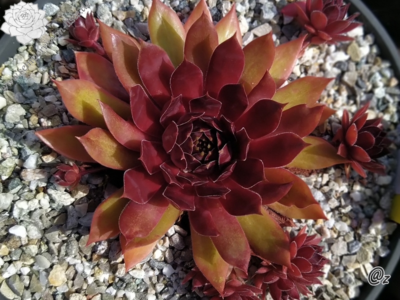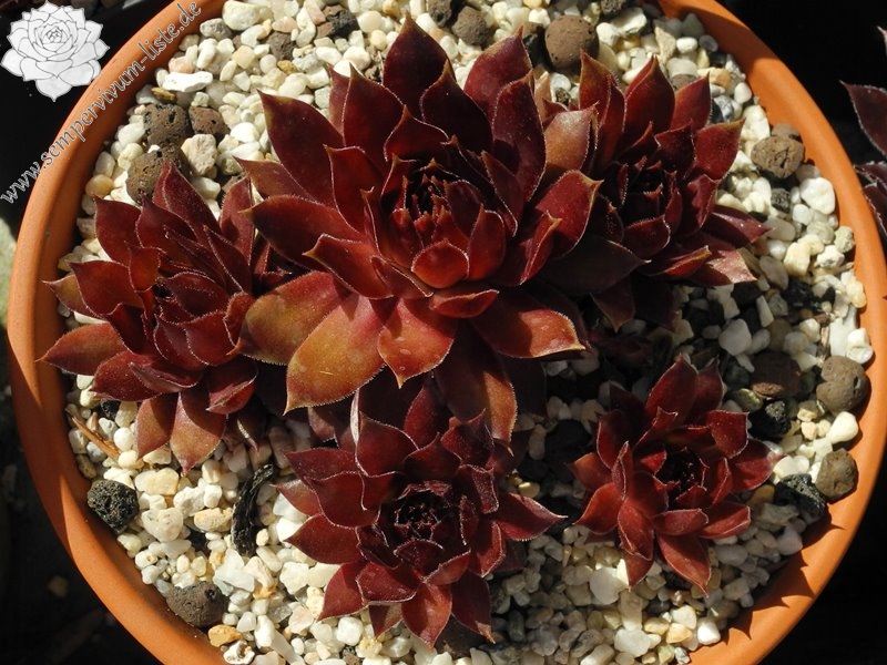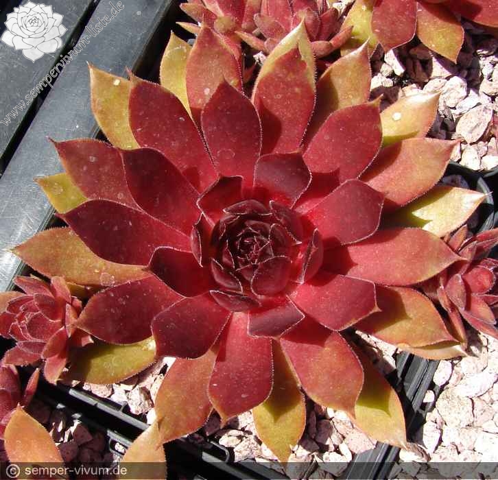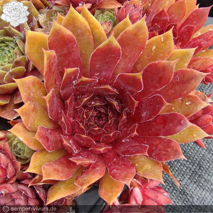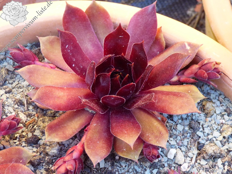 Es sind schon größere Rosetten von etwa acht Zentimetern und mehr in ganzjährig brillanter Rotfärbung, die zeitweise auch zu Orange tendiert. Die glänzende Blattoberfläche verstärkt obendrein die Wirkung der leuchtenden Farbe. Endlich haben wir zu diesem Liebkosenamen auch den passenden Sämling zwischen den vielen Nachkommen unserer Sorte 'Lemon Kiss' gefunden.
